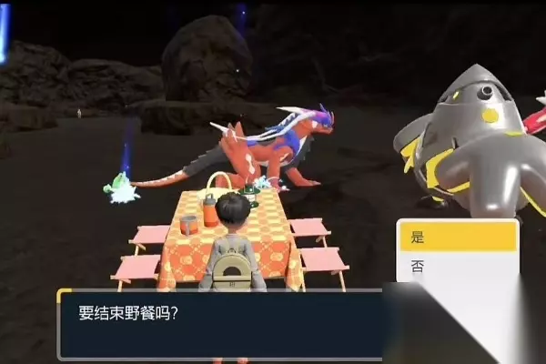 5、最后一直走到洞穴的后面的这个地方可以在原地进行野餐刷新,还会遇到圆陆鲨可以再次进行捕捉。