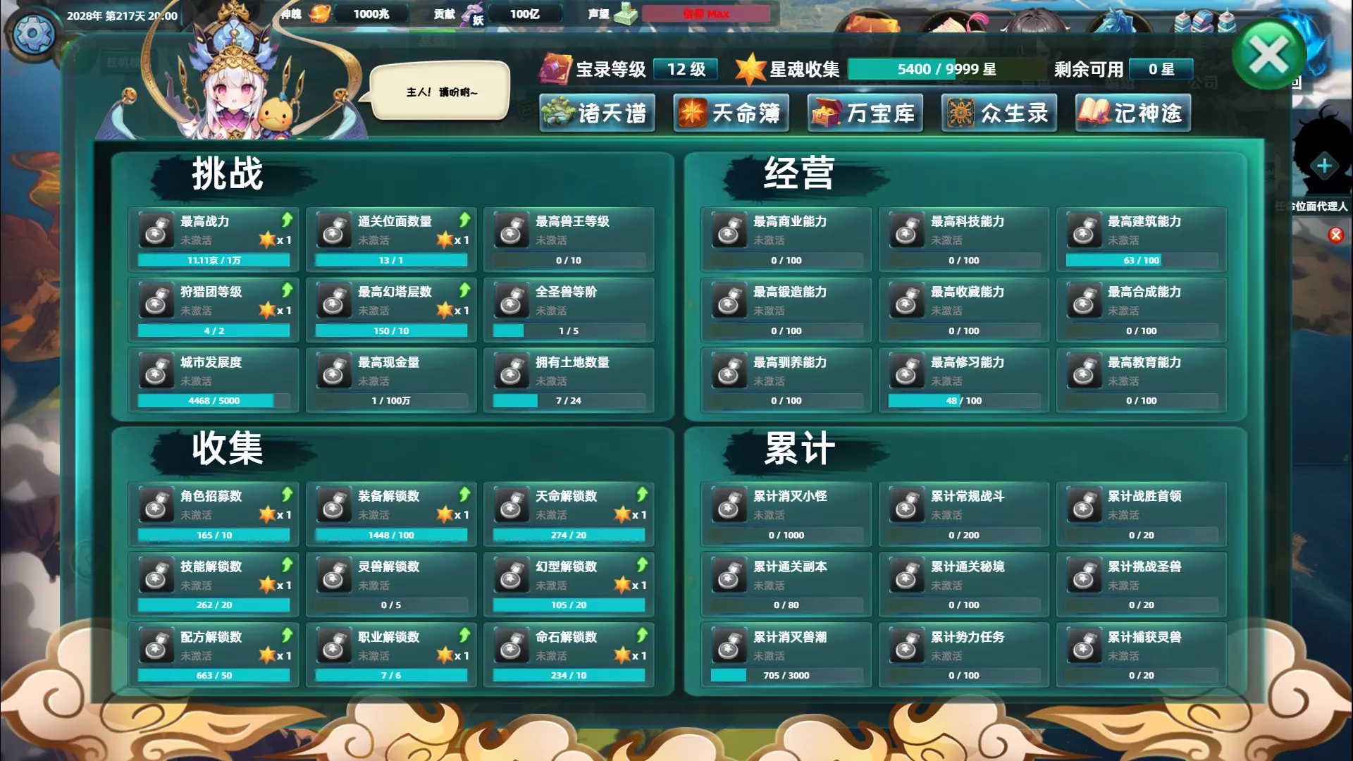 成就系统 本次将更新期待已久的成就系统。该系统包含挑战、经营、收集、累积四大类别及36个子类别,总计超过200个可解锁成就。