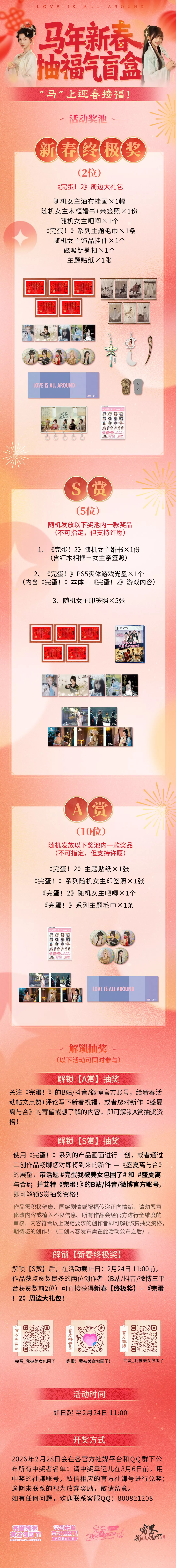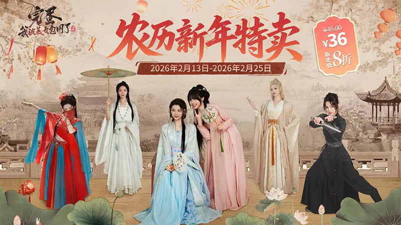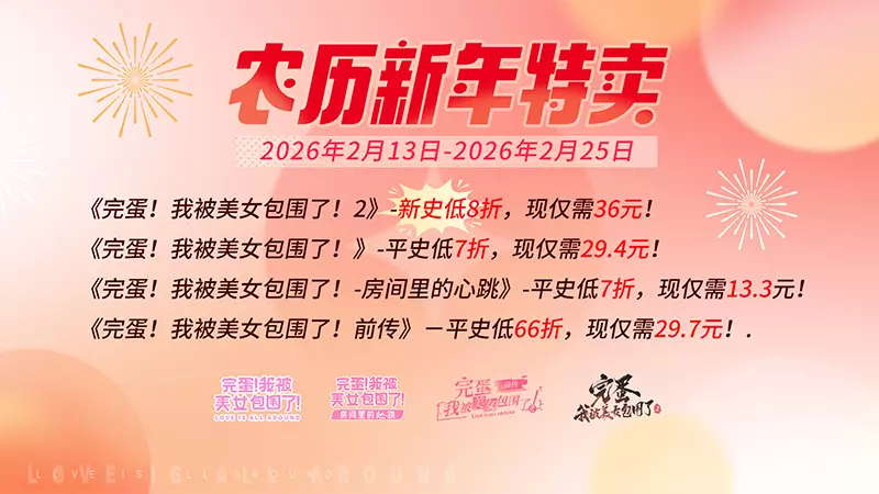 《完蛋!我被美女包围了!2》 完美延续“完蛋宇宙”的魅力,原班人马古装惊艳回归!继承前作心动体验,喜剧元素与深度权谋悬疑剧情交错,家国情怀与古风恋爱的融合,“情感线”与“悬疑线”双轨并行——专注情缘可能错失真相,执着探秘或与真爱无缘。 你的选择决定命运走向,多重结局待你探索。即刻再续完蛋宇宙的感动与心跳,再一次让你心动! 除了“新史低”特卖活动外,《完蛋!》系列还在B站、抖音、微博三平台同步推出相关活动,一起迎春接福!