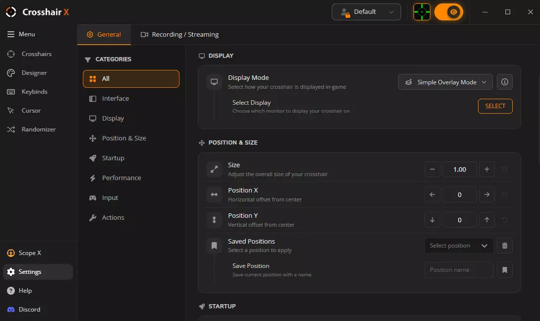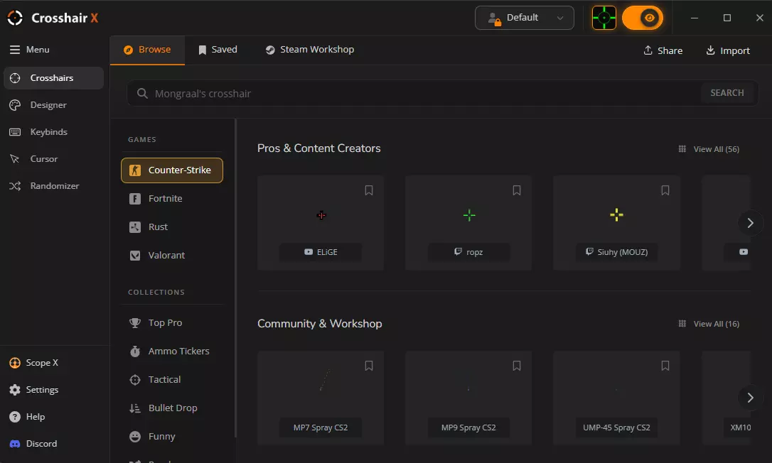 在应用顶部添加了更大的配置文件快速选择功能。 已从侧边栏移除“配置文件”选项,现在可通过快速选择访问。 新增了配置文件筛选、搜索功能以及表格视图,用于配置文件管理。 更新了顶部栏中准星可见性状态的可见性指示器。