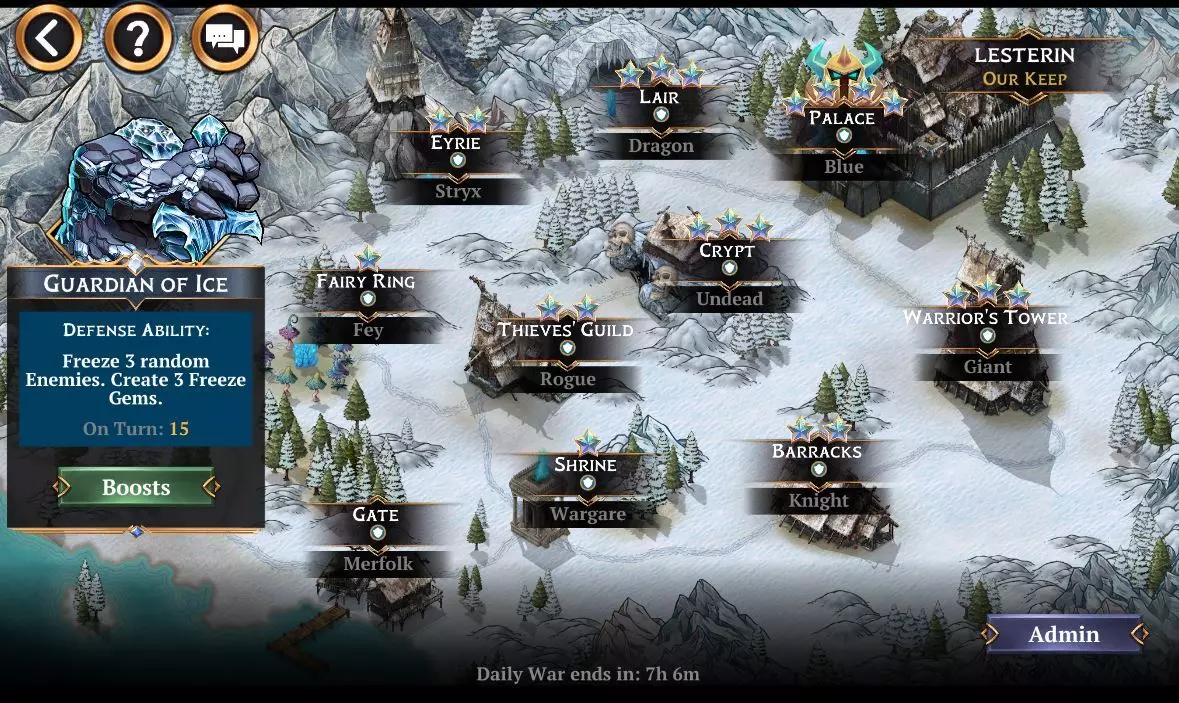 公会每购买3个增益道具,将获得1点守护者祝福的技能点。这些技能点按特定顺序解锁:生命 > 护甲 > 攻击 > 魔法。整个公会最多可获得135个增益道具。当这些守护者祝福解锁后,将在每日战争战斗中为公会成员的攻击队伍提供技能点!每当公会的要塞守护者队伍出战防御要塞时,将消耗1个公会的要塞守护者增益道具,且仅持续该场战斗。优先使用最高等级的增益道具。再次说明,此增益道具会在该场战斗中提升守护者等级,并优先使用最高等级的增益道具。活动期间,每天公会的守护卫士增益总数会恢复至公会成员已购买的初始总量,为次日的每日战争做好准备。公会战争活动结束时(目前为5天后),公会增益将重置为零,下次活动需重新购买。请记住:城门始终由守护团队防守,任何没有玩家防守的地点均……