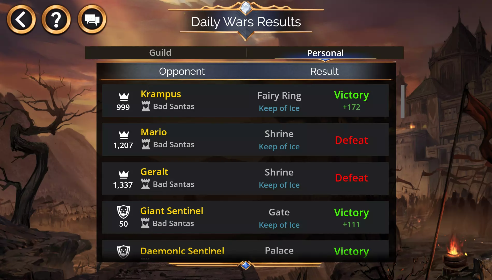 玩家将能够查看过往每日战争的结果和相关信息!新的每日战争结果菜单可从公会战争主菜单(排行榜下方)进入。结果菜单中有两个标签页:公会:查看您所在公会的结果。