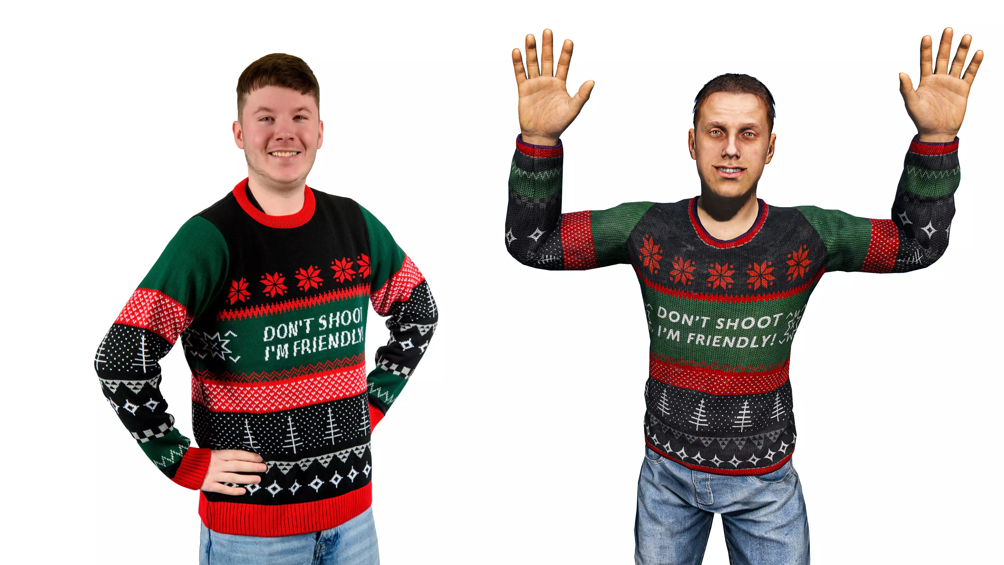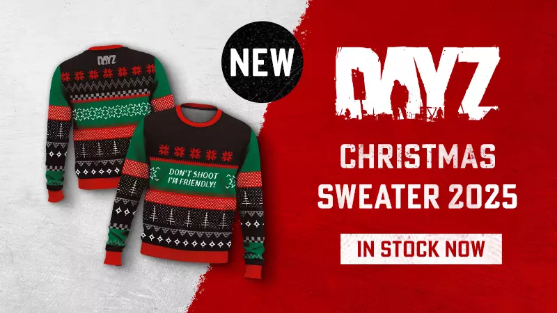 幸存者们, 作为圣诞节期间玩家呼声最高的周边商品之一,《DayZ》主题游戏同款毛衣现已在我们的周边商店上架! 可通过此处进入我们的周边商店进行购买。 英国地区的幸存者可直接从此处订购。 这款毛衣恰逢冬季和假日季推出,非常适合家庭聚餐时穿着——毕竟当玩笑开得有些过火,连防弹背心都无法阻止尴尬与泪水成为“调味剂”时,一件印着“别开枪,我是友军”的毛衣或许能派上用场。