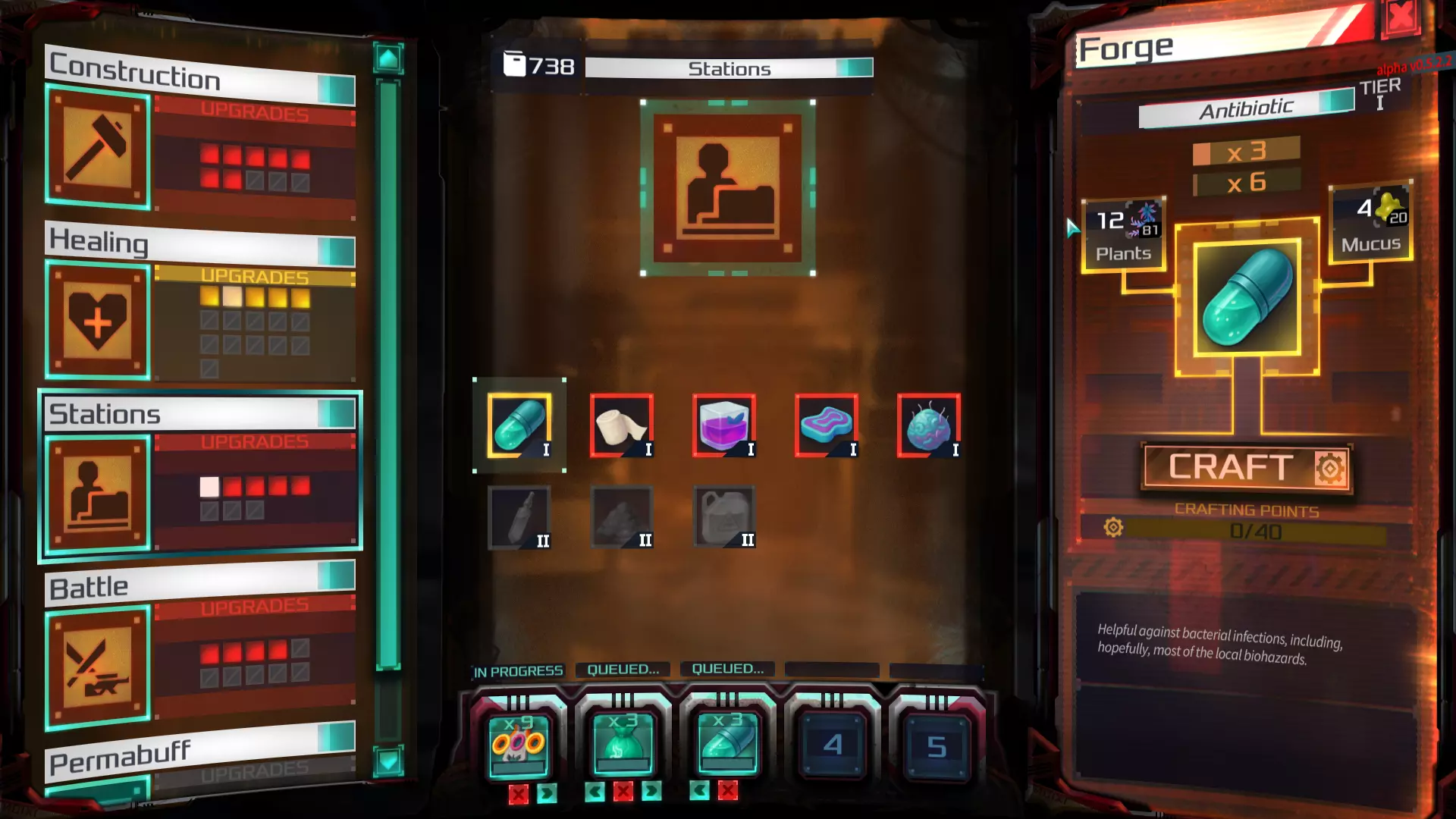 《安塔瑞斯之死》中有一个非常实用的功能,名为“生产队列”。由于部分物品的制作速度较快,我们设计了一套系统,让你可以选择角色完成当前工作后接下来要进行的项目。 工坊中同样也有这个系统! 工坊 仅用这些基础工具来重建宇宙飞船或许很困难,但目前并没有太多选择。
