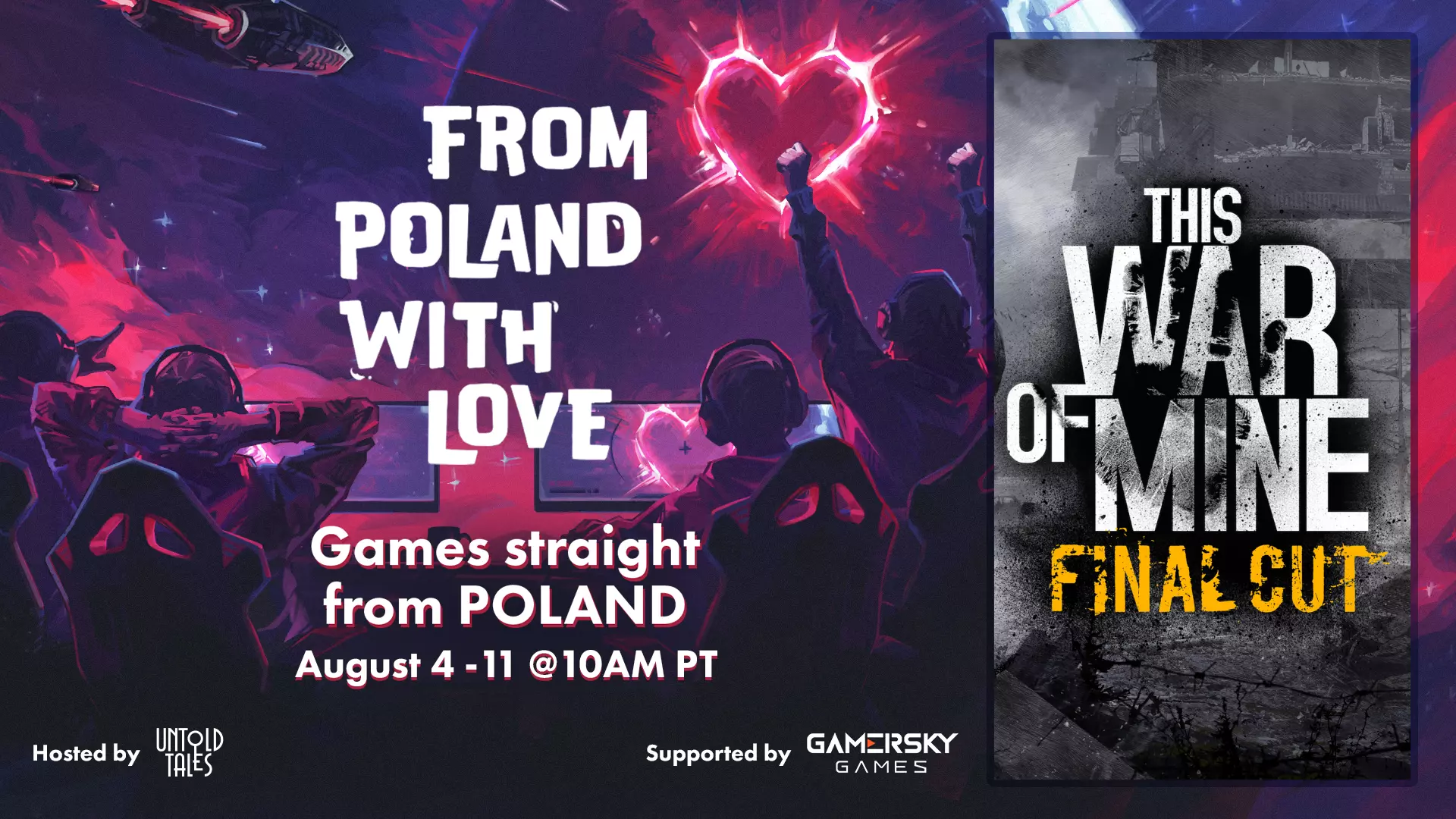 大家好, 为了庆祝波兰游戏开发行业令人难以置信的创造力,我们很荣幸参与Steam平台的“波兰之爱”特卖活动! 作为活动的一部分,我们备受赞誉的作品《这是我的战争》将以高达90%的折扣进行销售。