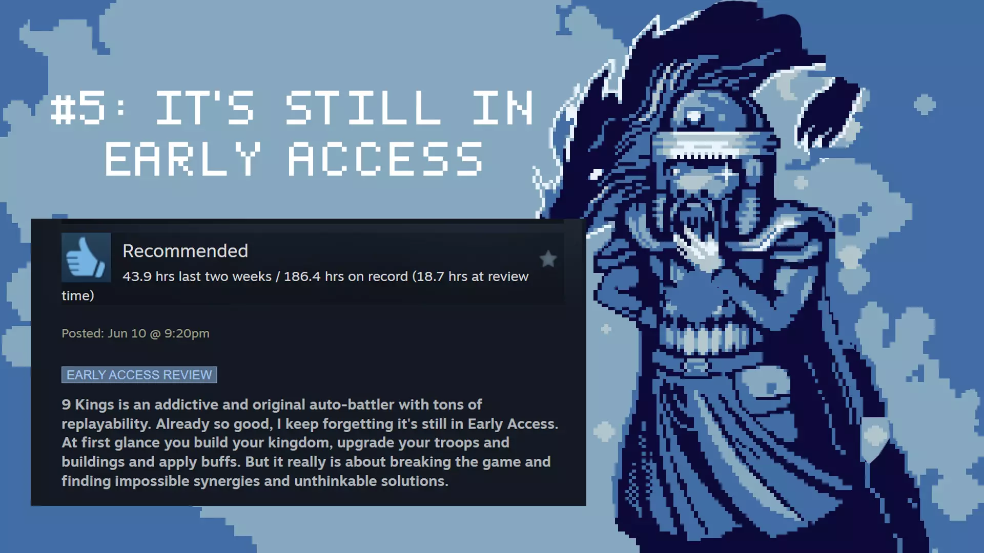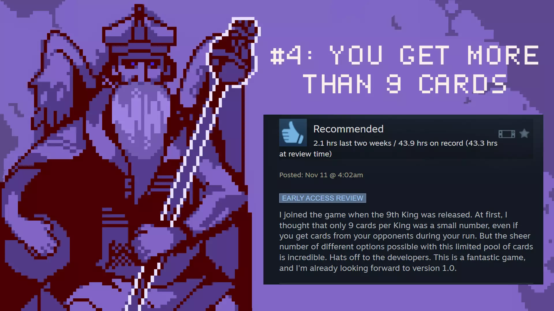 大家好, 2025年Steam大奖现已开启!如果大家想支持我们的游戏,希望能考虑提名《9 Kings》角逐“年度游戏”奖项。 2025年是游戏界精彩纷呈的一年,而能获得大家的提名对我们而言意义非凡。每一份提名都有助于《9 Kings》的传播,让更多新玩家了解这款我们共同打造的游戏。 今年我们付出了诸多努力。在抢先体验阶段,得益于大家的反馈,我们已经推出了以下内容: 新的国王角色 超过100张卡牌 数十种全新的特权与政令 全新的游戏模式 多项重要的更新与改进