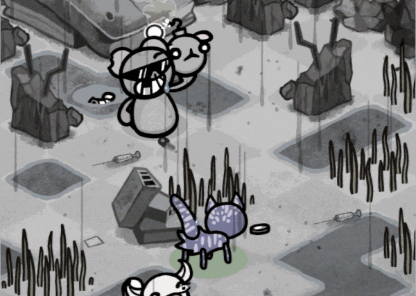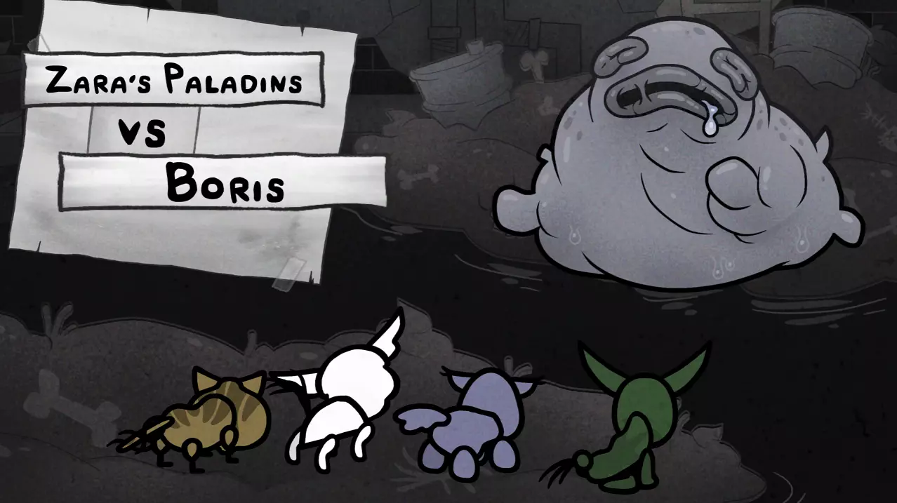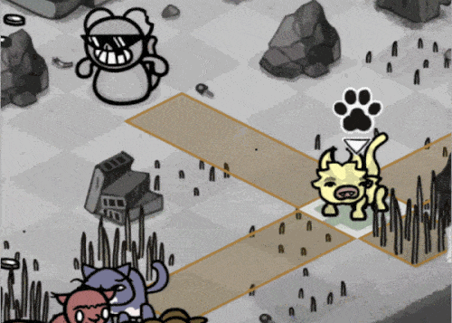 移动反应机制确实让战斗变得精彩起来。现在的战斗极具动态感且充满乐趣。不再是单纯地猛揍这个“肉袋”直到它死亡,现在你每次攻击都必须考虑站位。你可以用低伤害的轻攻击引诱它穿过地图远离你的队伍,或者将其击晕以便近战攻击者能进行自由攻击,又或者承受它的践踏伤害近距离攻击它,同时还得确保当它向你移动时不会踩到其他猫咪。如此微小的改动就将鲍里斯从一个无聊的“肉袋”变成了游戏中最有趣的战斗之一,这太不可思议了。从那以后,除了一些数值平衡调整外,它基本没有变化。