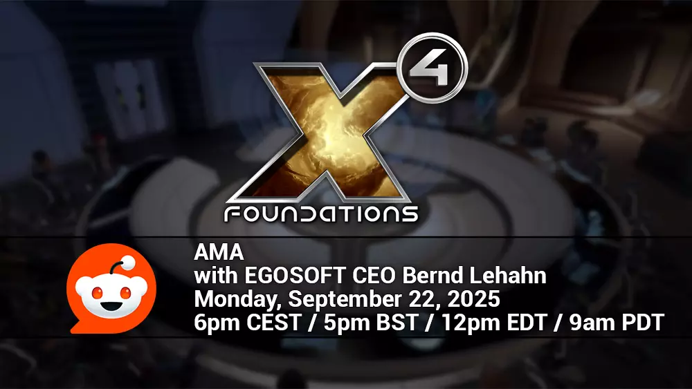 时间:2025年9月22日(星期一) 时间:欧洲中部夏令时间18:00 / 英国夏令时间17:00 / 美国东部时间12:00 / 美国太平洋时间09:00 地点:Reddit社区r/X4Foundations上的X4开发者问答活动,EGOSOFT首席执行官Bernd Lehahn将参与 这是你直接提问《X4:基石》及其未来发展以及EGOSOFT相关一切问题的机会,不要错过!