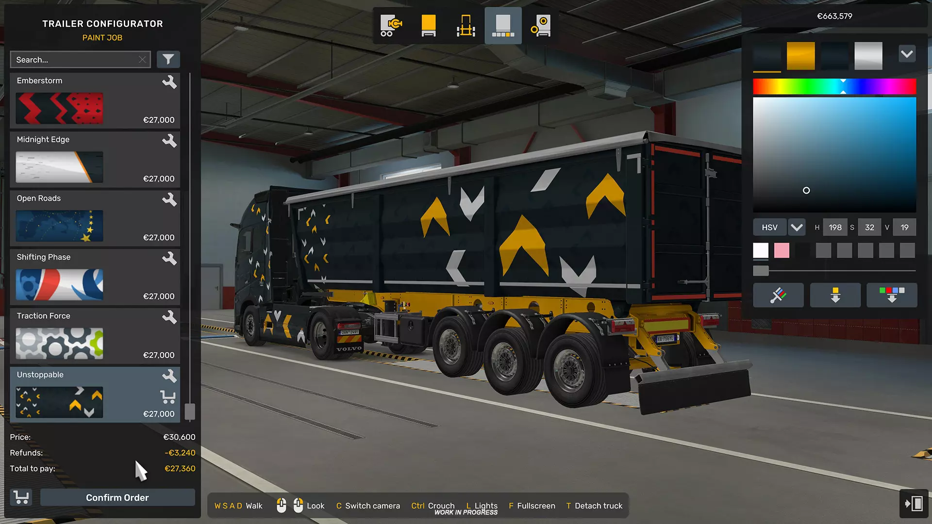 除了这些优化外,我们还对用户体验(UX)、用户界面(UI)和控制器操作进行了逐步改进,并提供了更清晰的公司相关信息访问方式,例如公司名称和标志,包括编辑它们的选项。所有这些调整旨在让日常管理任务更加顺畅和信息丰富,在不改变玩家熟悉的现有结构的前提下提升体验。 卡车配置器改进 卡车和挂车配置器以及探索器也将得到针对性改进。虽然这些界面功能强大,但我们认识到它们目前的形式对于控制器或鼠标操作而言并非总是最佳,部分功能不够清晰、难以导航,或缺乏有用的工具提示和提示信息。本次更新还修复了一些小问题。我们的目标并非完全重新设计,而是优化和改进现有的用户界面(UI)。这意味着在保持熟悉结构的同时,实现更清晰的导航、更完善的反馈、在必要处添加提示以及整体稳定性提升。无论你是用鼠标微调细节,还是在控制器上轻松浏览菜单,这些改动都应让载具自定义变得更易用且更有趣。