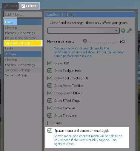 实用工具面板中新增了一个选项,可将生成菜单和上下文菜单的按键设为切换模式。