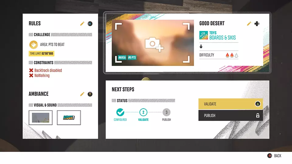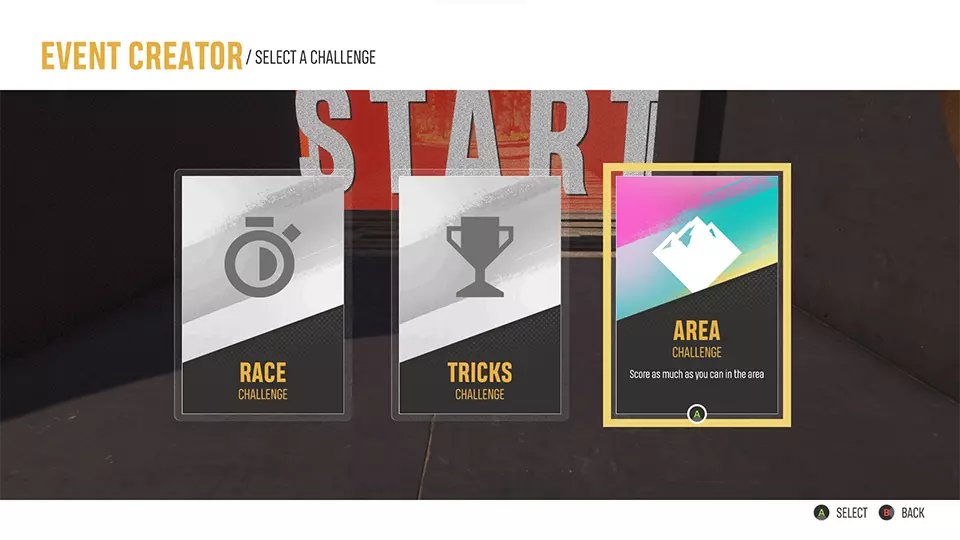 区域事件类型介绍 本次更新还引入了一种全新的事件类型,以充分利用新工具!区域事件类型允许玩家创建无赛道的事件,转而专注于一个起点,并基于技巧、时间或两者结合的规则。这种新事件类型非常适合那些热爱自由式挑战并希望突破可能性边界的玩家。无论你是设置技巧区域还是计时挑战,区域模式都能为《极限国度》带来全新且令人兴奋的体验。