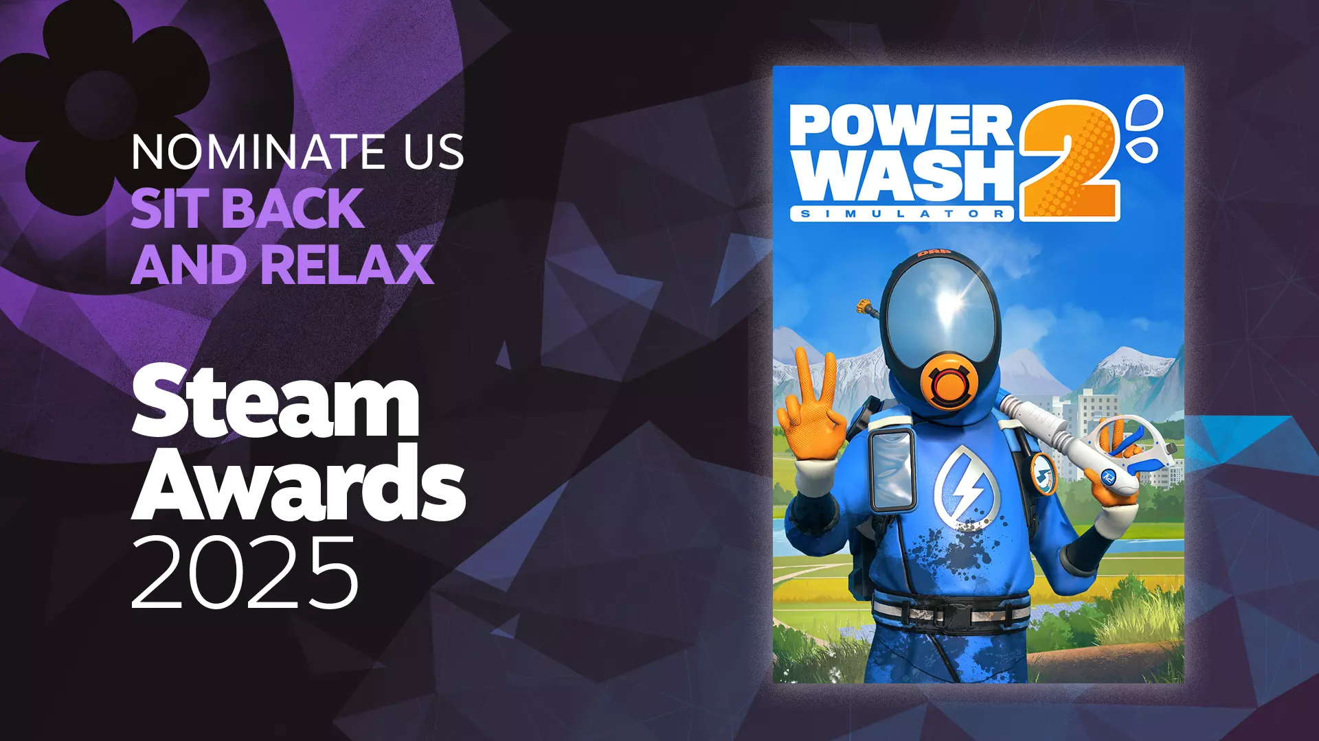 各位清洁大师们! 《PowerWash Simulator 2》已推出三周多,全平台玩家数量已突破150万,成绩斐然! 又到了一年一度的2025年Steam大奖评选季!今年,我们希望大家能提名我们角逐“轻松惬意”奖项! 无论你是独自游玩,与好友一同舒适畅玩,还是召集四人小队开启清洁派对,《PowerWash Simulator 2》都是放松身心的绝佳选择。无需压力,只需瞄准你想清洁的任何地方,然后“噗——”地一下……