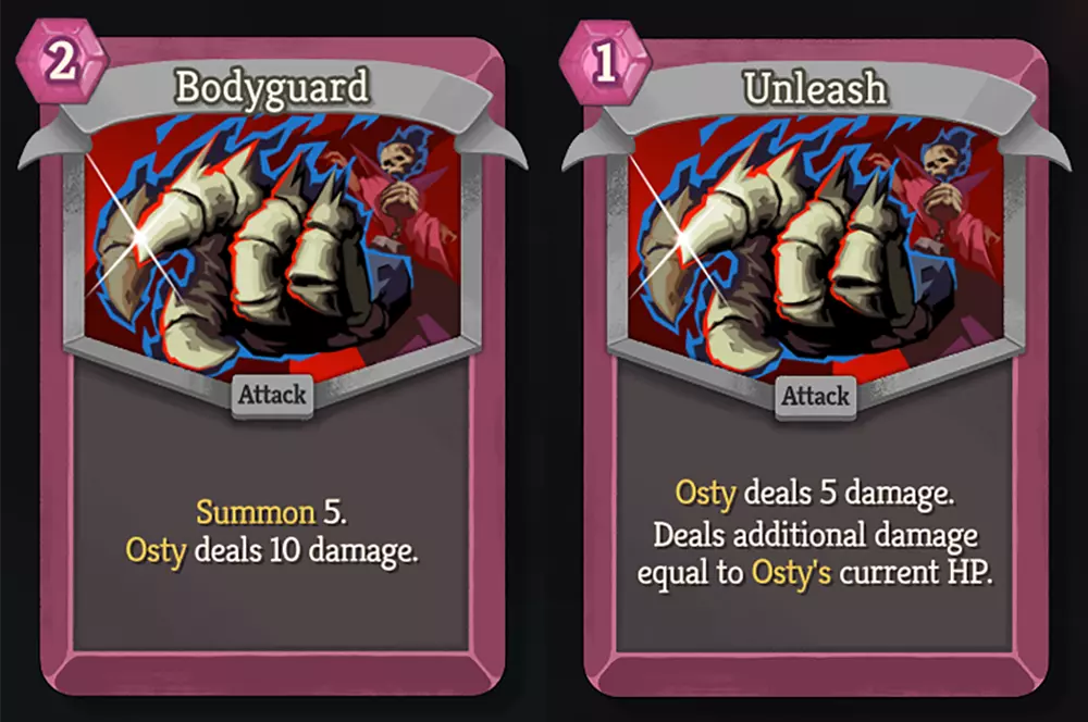 我们在去年10月展示的这张“Bodyguard”卡牌,实际上是缚亡者的独特初始卡牌,但后来它被彻底重做了。虽然使用了相同的插画,但现在它有了新的名称“Unleash”,并且拥有完全不同的机制。也许我们会以某种形式再次见到旧卡牌……也许新卡牌有一天也会经历它自己的演变。