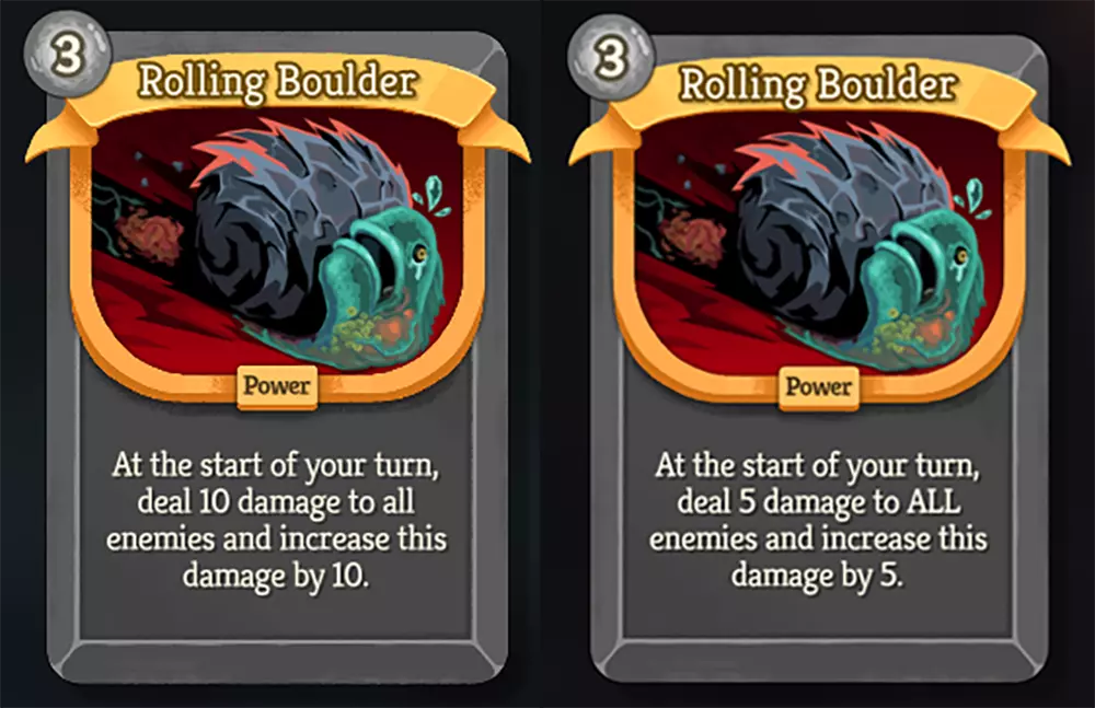 另一方面,我们在今年7月预告过的卡牌“滚石”(Rolling Boulder)确实显得有些过于强力(OP)。它的基础伤害和成长伤害现在都被削减了一半。我们很快就会看到大家对它的看法——当然,前提是在此期间它不会再次被调整。