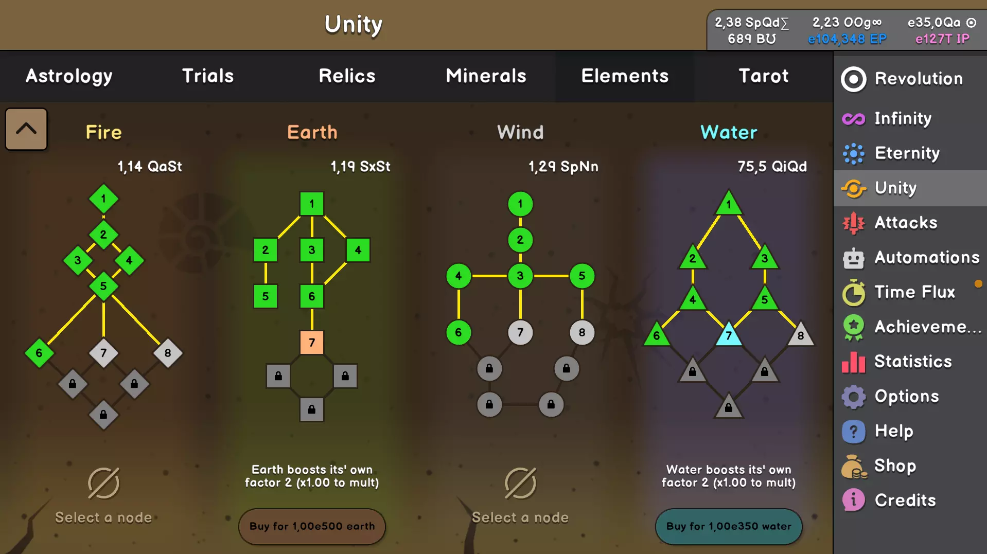 元素树 元素树包含可购买的升级项,这些升级项能够强化元素或改善游戏玩法的各个方面。