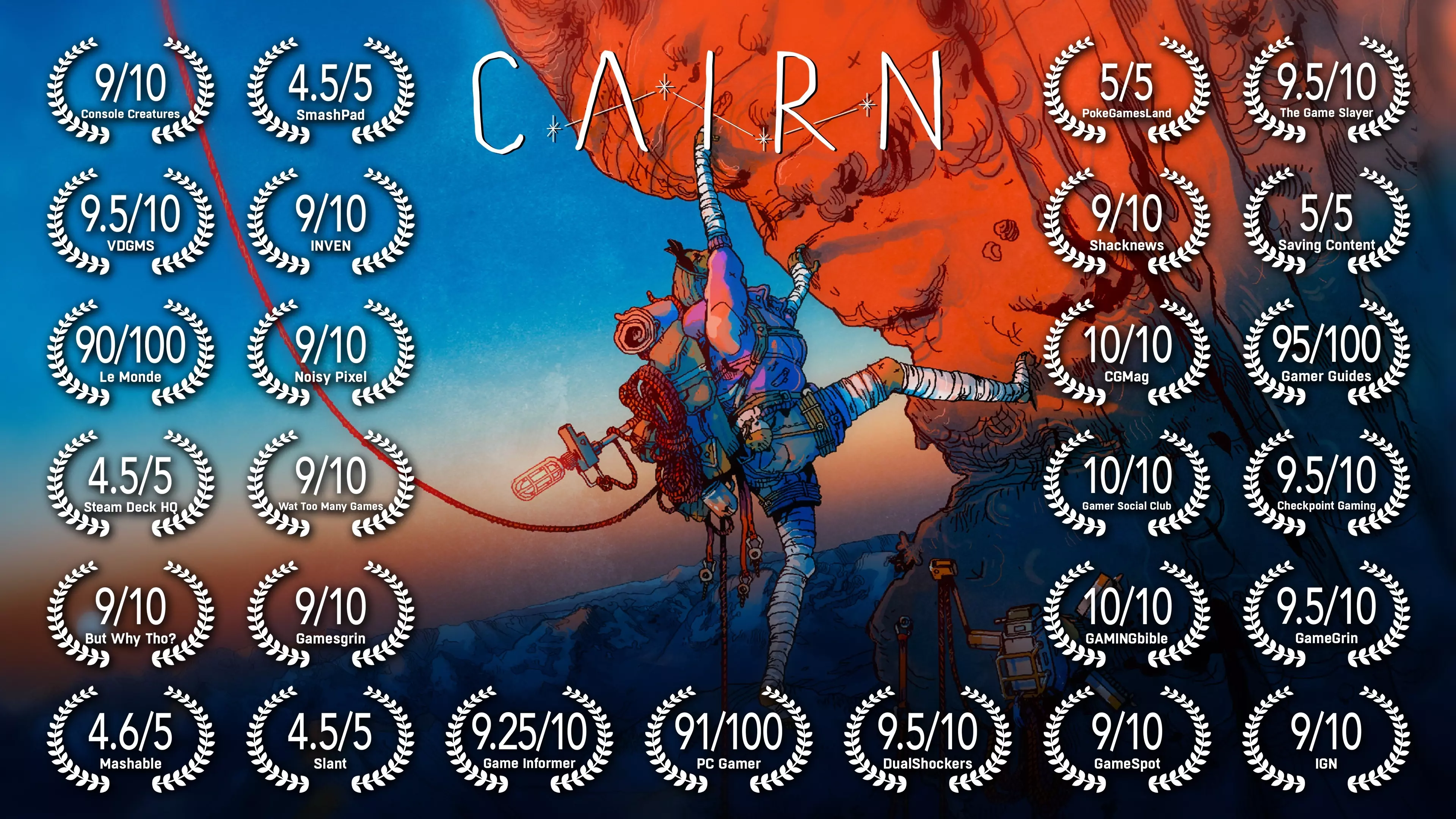 我们仍在攀登属于自己的神之山的旅途中,但对于一路上获得的所有鼓励,我们已心怀感激! “一段艰难却收获巨大的体验”——TechRadar Gaming “一部令人惊艳且充满惊喜的杰作”——Game Informer 9.25/10 “攀登神之山的过程令人振奋”——IGN 9/10 “一次成功的尝试。画面绚丽,扣人心弦,非凡卓越。”——雅各布·盖勒 “一款极具挑战性且画面精美的生存游戏。”——《卫报》 “每一秒都充满紧张感”——Polygon “一场华丽而艰苦的冒险。”——GameSpot 9/10 “是我多年来玩过的最佳电子游戏之一”——PC Gamer 9/10 还有更多好评……