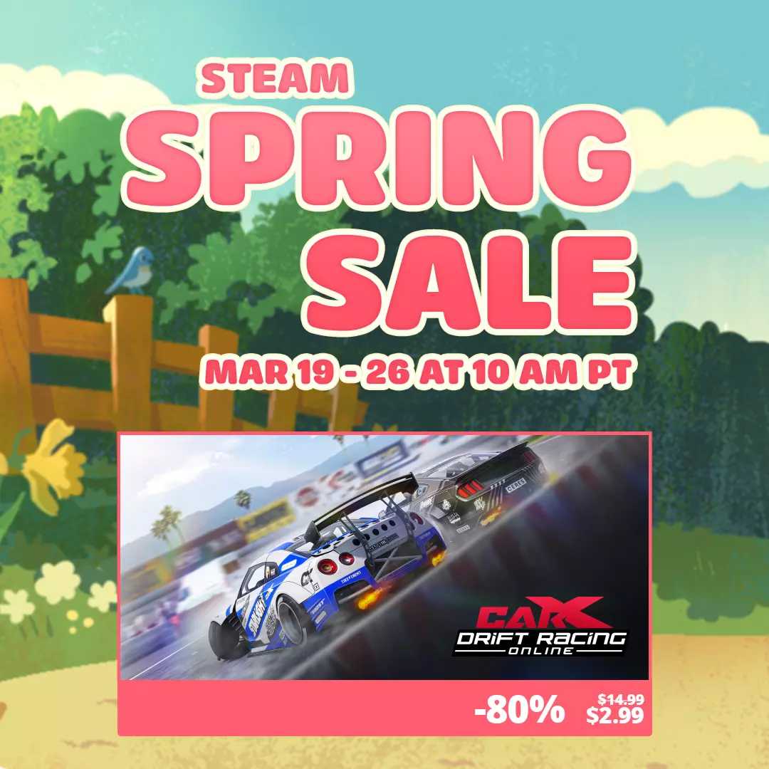 Steam春季特卖现已开启!《CarX漂移赛车在线》现正以80%的巨大折扣优惠发售!