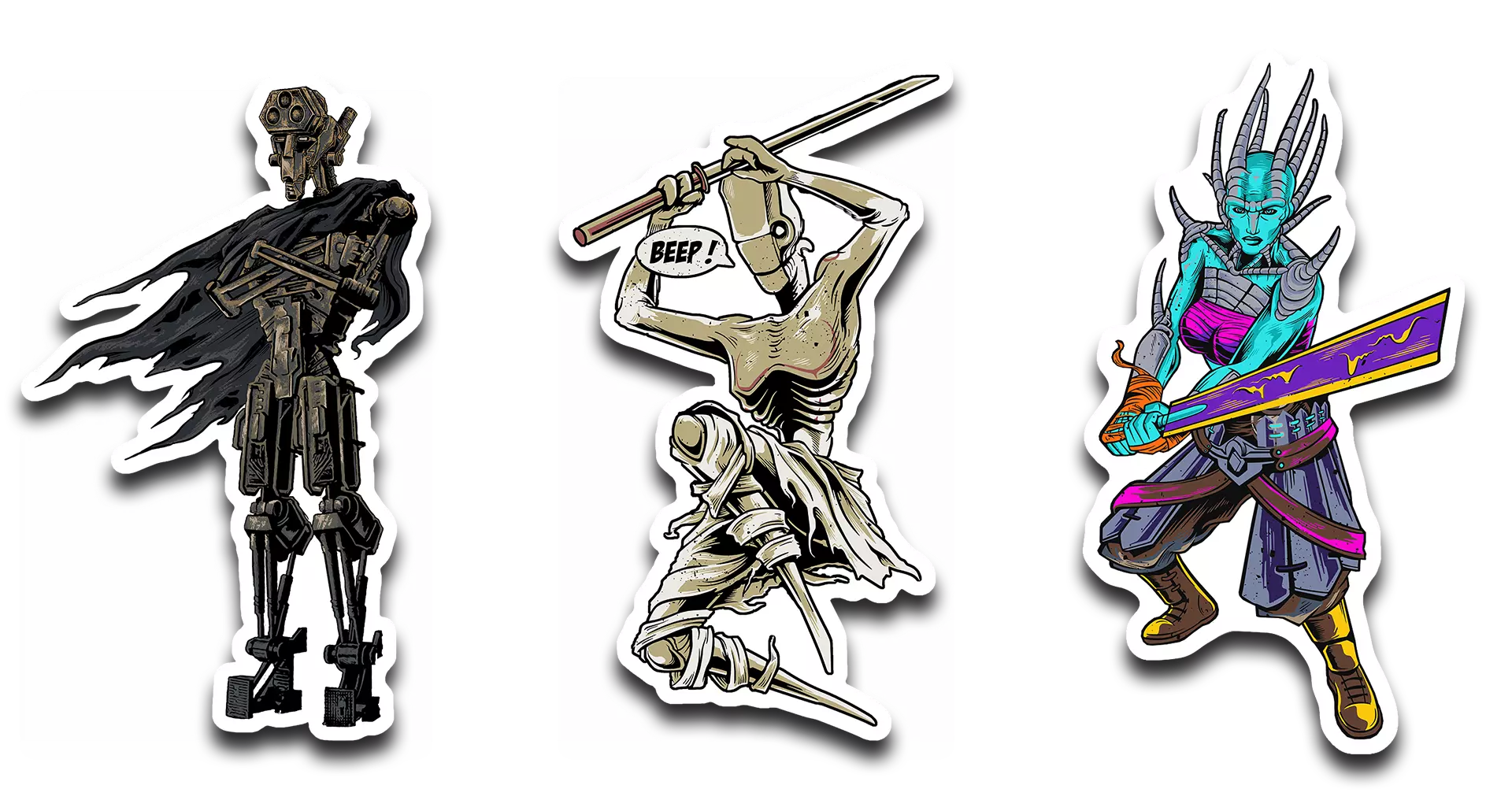 我们还更新了贴纸系列。全系列现已采用更耐用的乙烯基材质,并且新增了一款80年代风格的骨人设计。适用于笔记本电脑、水瓶或任何需要增添《剑士》氛围的平面。 此外,我们将从现在起到12月31日推出周边折扣活动。部分商品可享受高达20%的优惠,其中包括备受粉丝喜爱的《剑士》针织毛衣。 万圣节回顾 如果你错过了万圣节期间的内容,我们分享了一段克里斯的短视频,他讲述了在《剑士》刚起步时,自己担任夜间保安的经历。这是一个关于漫长班次、空旷仓库和一群死因不明的鸽子的诡异故事。