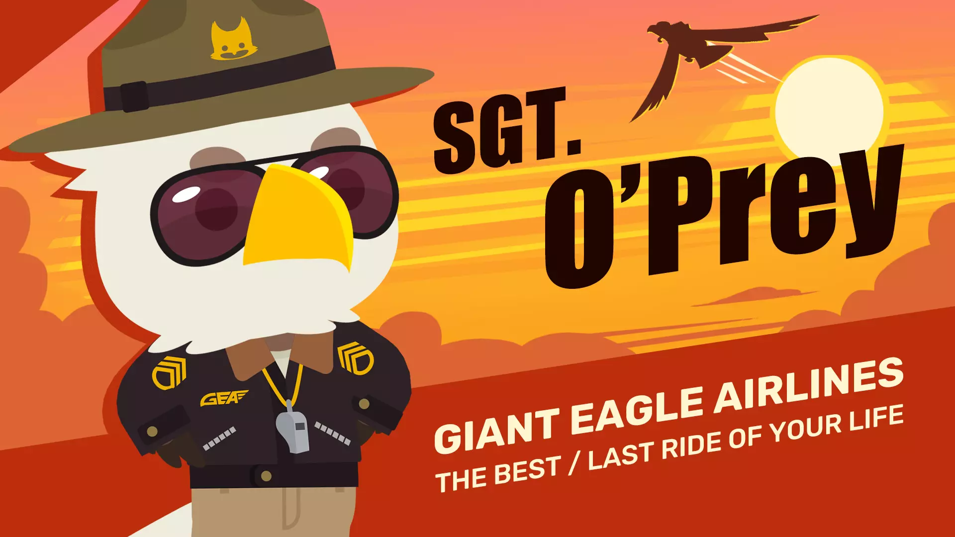 来认识一下奥普雷中士,这只威严的超级雄鹰将邀请你骑上他更为威严的巨鹰,投身这场世界上最可爱的生死之战。作为巨鹰航空公司的首席执行官,奥普雷对于让这些大鸟翱翔天际的工作极为认真,因此他亲自负责招募《超级动物大逃杀》的新兵。他对电视直播的武装冲突有着真挚的热爱:事实上,他自己也曾是《超级动物大逃杀》的明星 combatant。从未输过一场比赛!至少……他不记得自己输过。 奥普雷中士会在社交中心迎接玩家,让他们为大逃杀做好准备,并且会作为你在社交中心接受许多大逃杀相关任务的主要联系人。他是你在《超级动物世界》中落地时会遇到的几位新角色之一,我们非常期待你能认识他。有问必答!