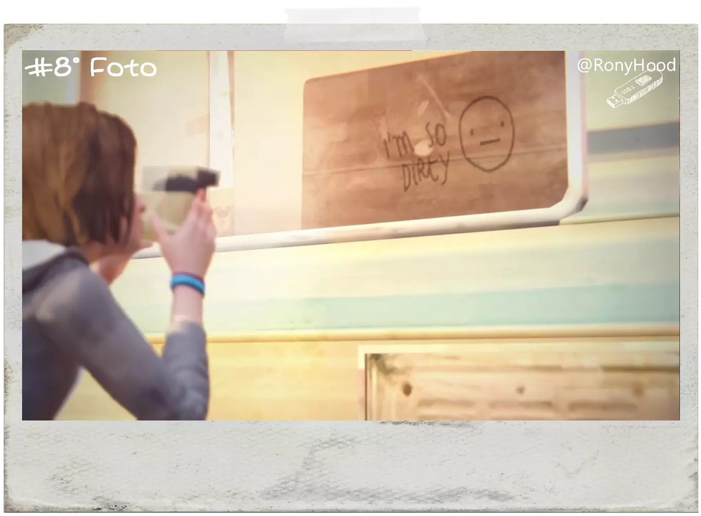 英文:在停车场将U盘交给沃伦之前,停车场尽头会有一辆拖车,靠近脏窗户并选择“绘制”选项。 麦克斯会在窗户上画画,拍张照片。 葡萄牙文:在停车场将U盘交给沃伦之前,停车场尽头会有一辆很脏的拖车,靠近脏窗户并选择“绘制”(A键),麦克斯会在窗户上画画,然后拍照即可。