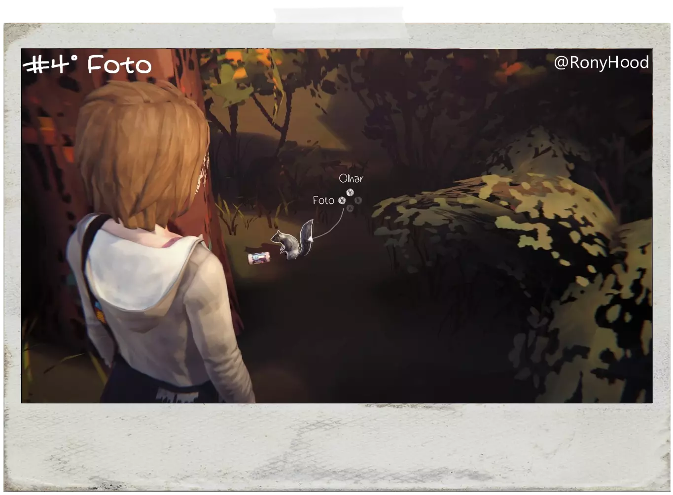 TelephotogenicEN:雕像附近会有一些滑板爱好者,与贾斯汀交谈并选择“TRASH”选项,然后回到过去,再次与他交谈并选择新选项“TRE FLIP”,然后给特雷弗拍照。 PT:青铜雕像附近会有坐着的滑板爱好者,与贾斯汀交谈并选择“TRASH”(X键),然后倒回时间,再次与他交谈并选择出现的新选项,之后选择“TRE FLIP”(B键),在特雷弗尝试滑板动作靠近时摔倒后给他拍照。