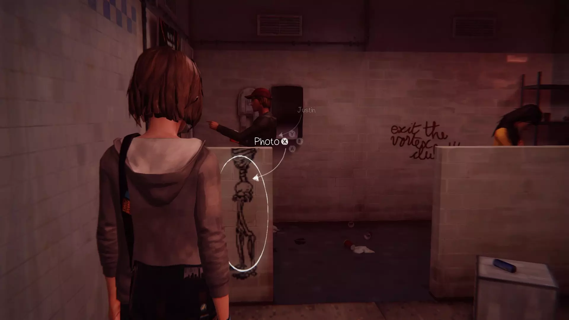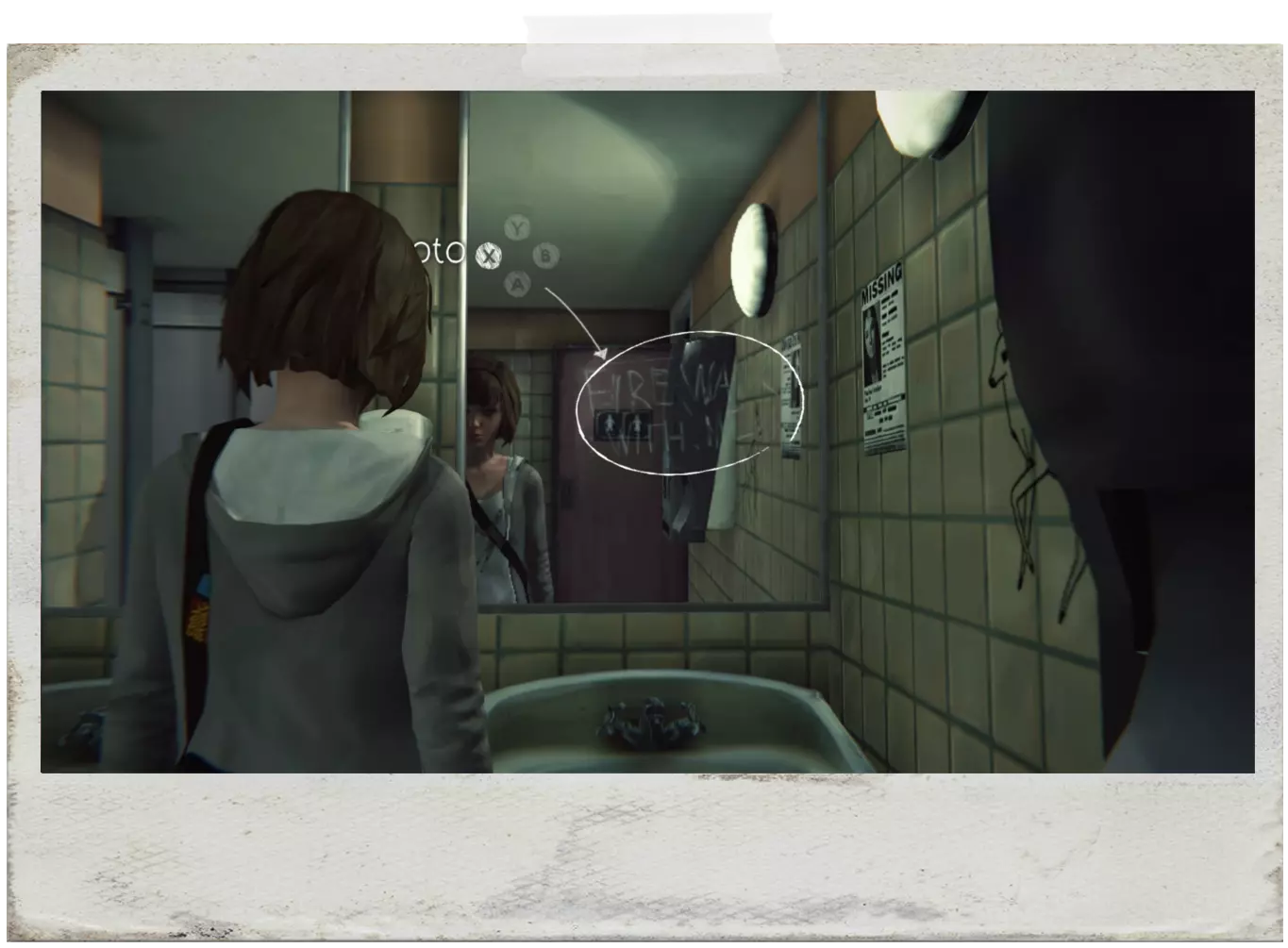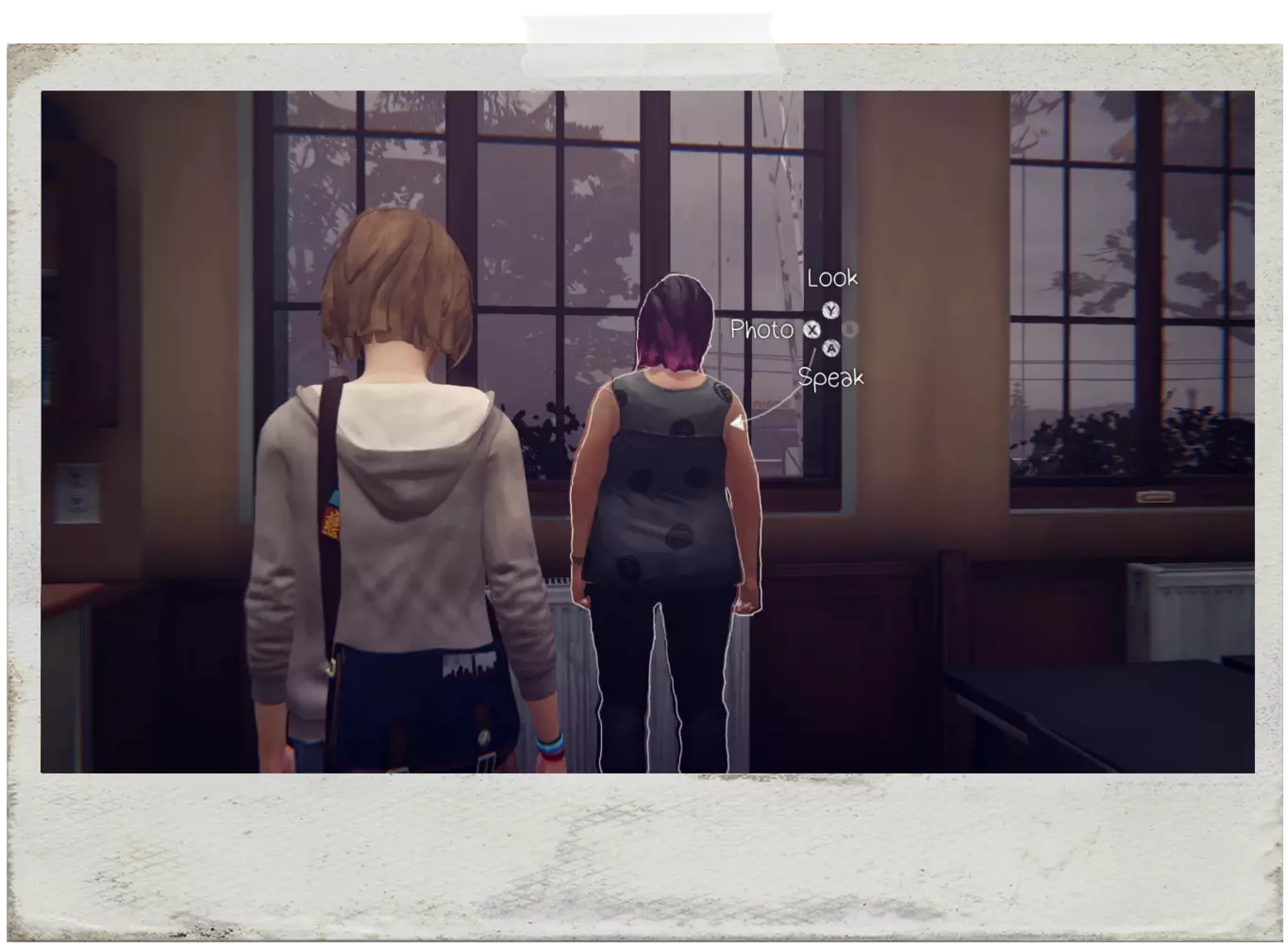 EN:在麦克斯和朱丽叶交谈后,你将能够拍摄这张照片。进入房间后,门附近的墙上会有几张照片,选择“弄乱”(MESS UP)来重新排列它们,然后拍照。 PT:这张照片只能在麦克斯和朱丽叶交谈后拍摄。当你进入维多利亚的房间时,门附近的墙上会有很多照片,然后选择“弄乱”(MESS UP,X键)来重新排列它们,接着拍照。