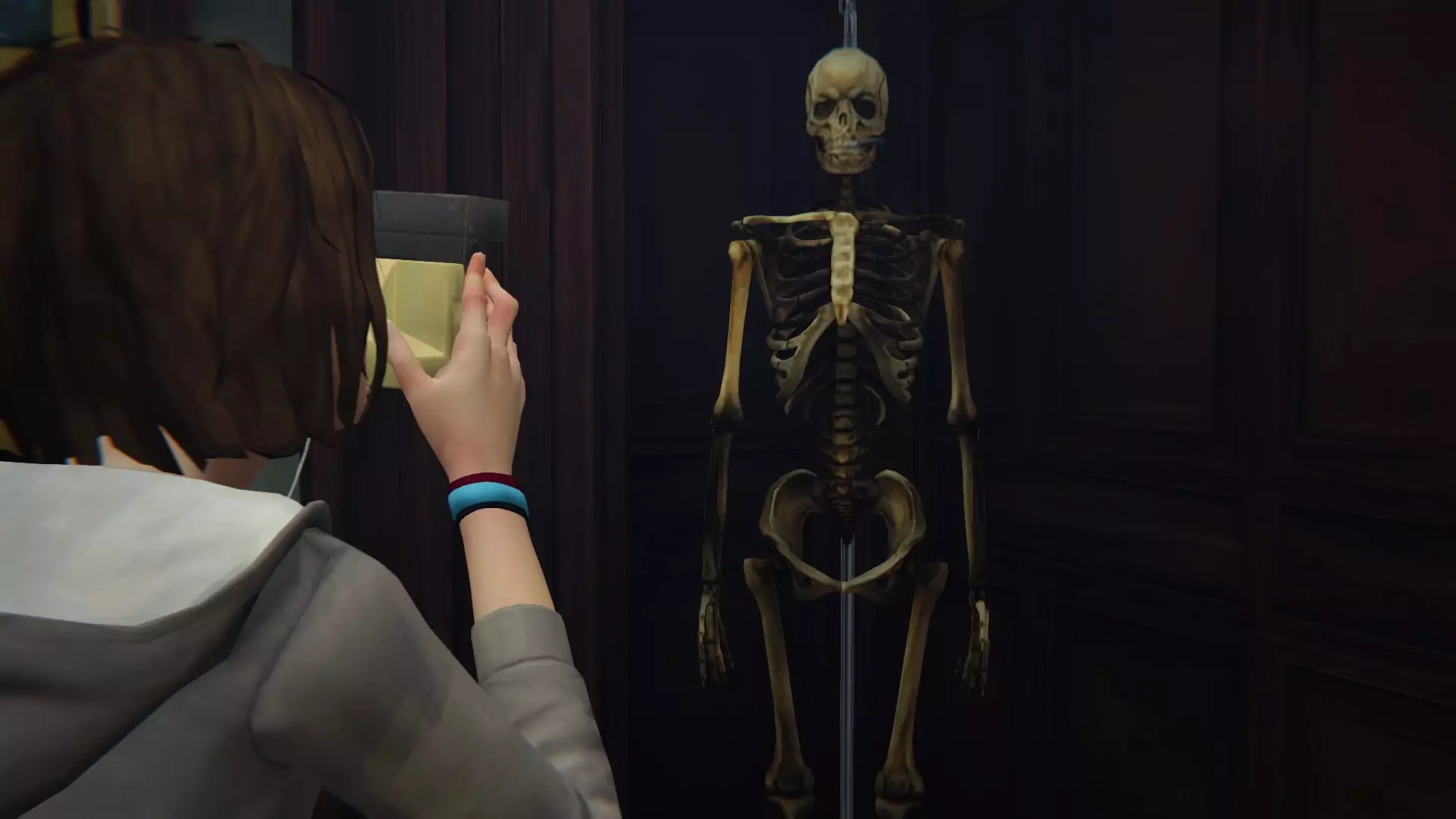 EN:章节开始后,与达娜交谈完毕,前往维多利亚的房间四处查看,在窗边的柜子下方找到一个可动人偶,然后拍照。 PT:章节开始时,与达娜交谈后,前往维多利亚的房间并在附近查看,直到在窗边的柜子上找到一个可动人偶(action figure),然后拍照。