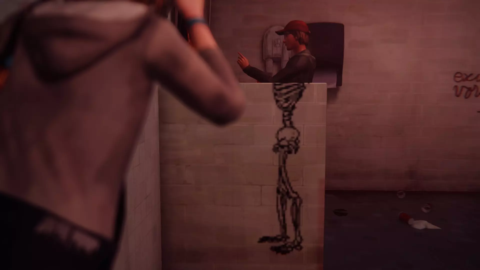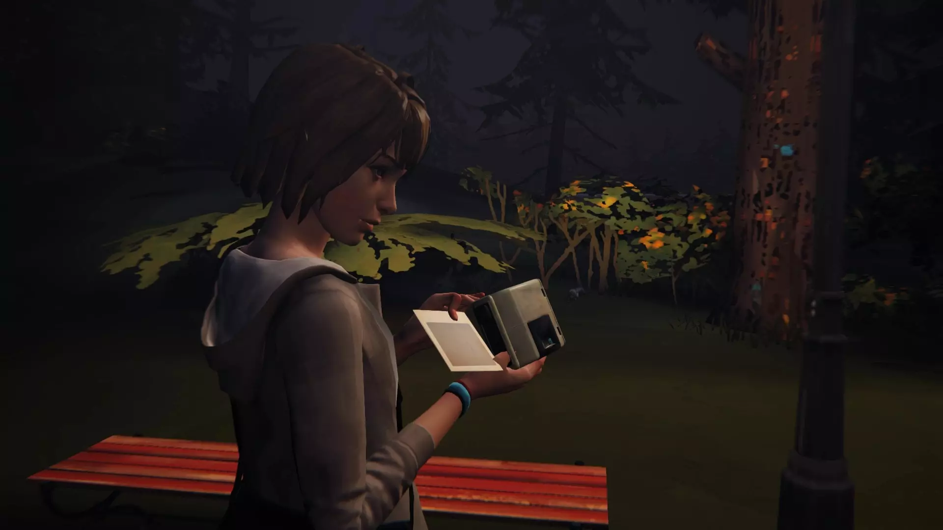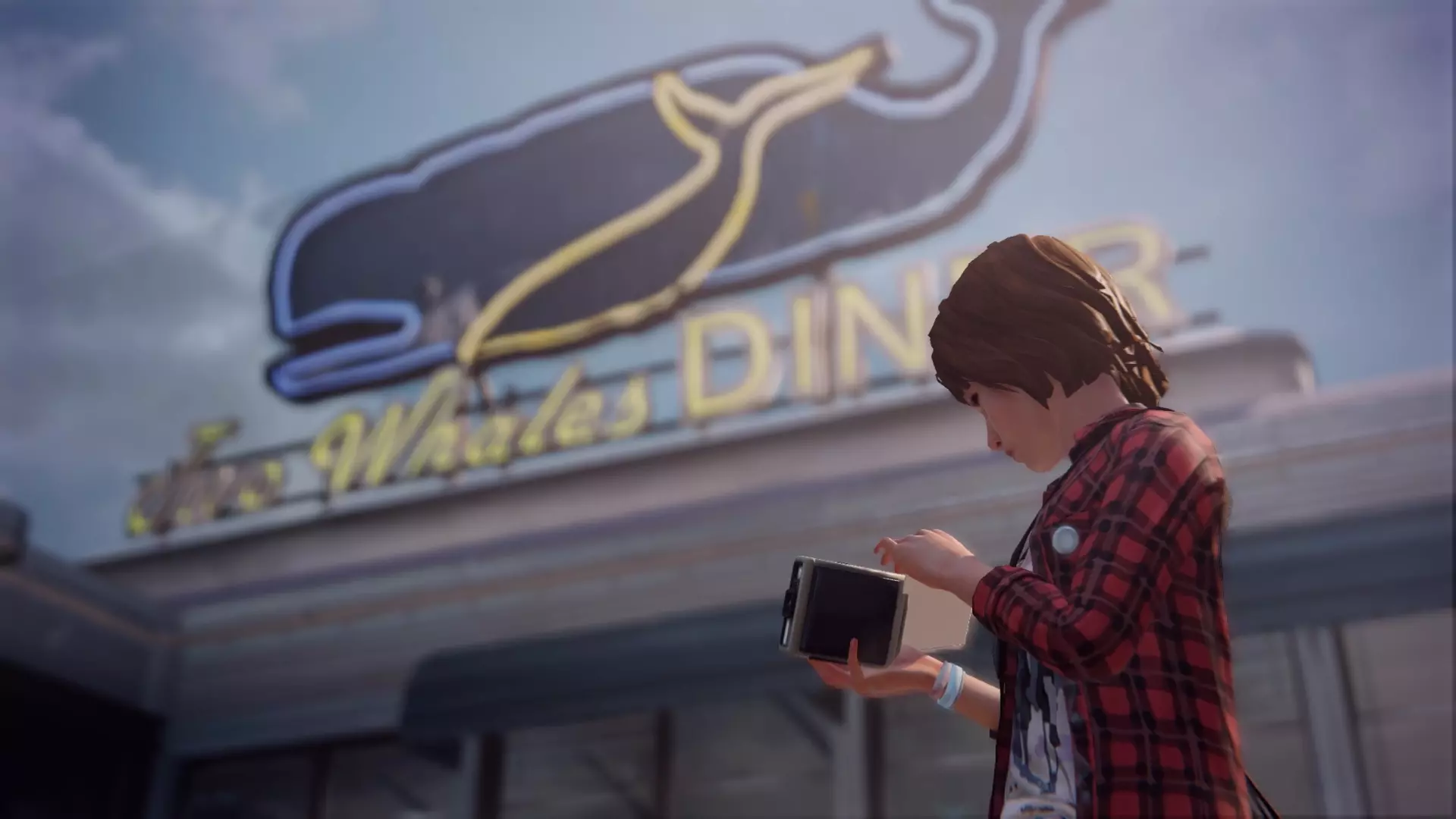PixelatedEN:离开酒吧,给校车拍张照。 PT:离开酒吧后,当和克洛伊在一起时,环顾四周会发现一辆停着的校车,调整位置以便能拍下它的照片。