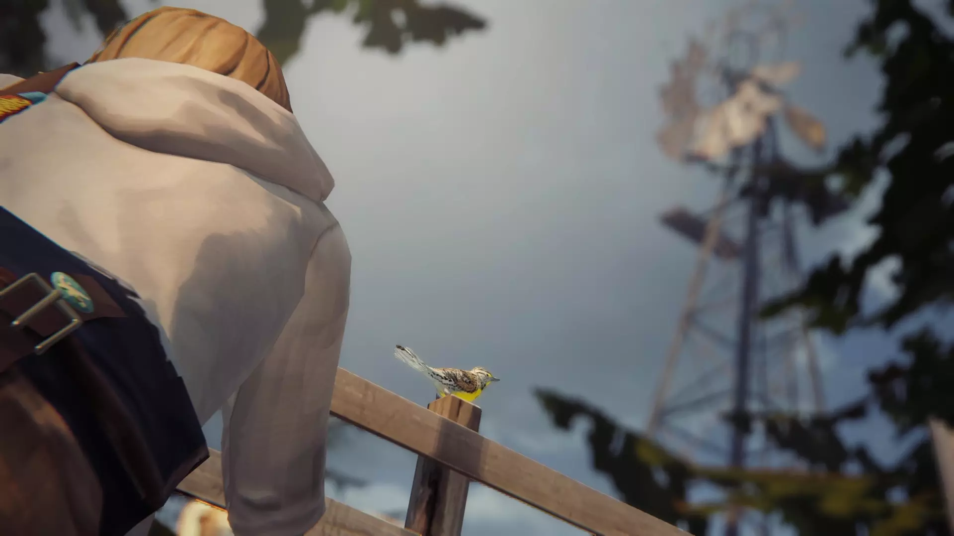 FisheyeEN:抵达普雷斯科特家的农舍后,朝着风车方向走,你会看到栅栏上有一只鸟,小心靠近并给它拍照。如果它飞走了,就倒回时间。 PT:一到达普雷斯科特家的农场,就走向风车,你会看到栅栏上有一只鸟,小心靠近并给它拍照。如果它飞走了,就倒回时间。