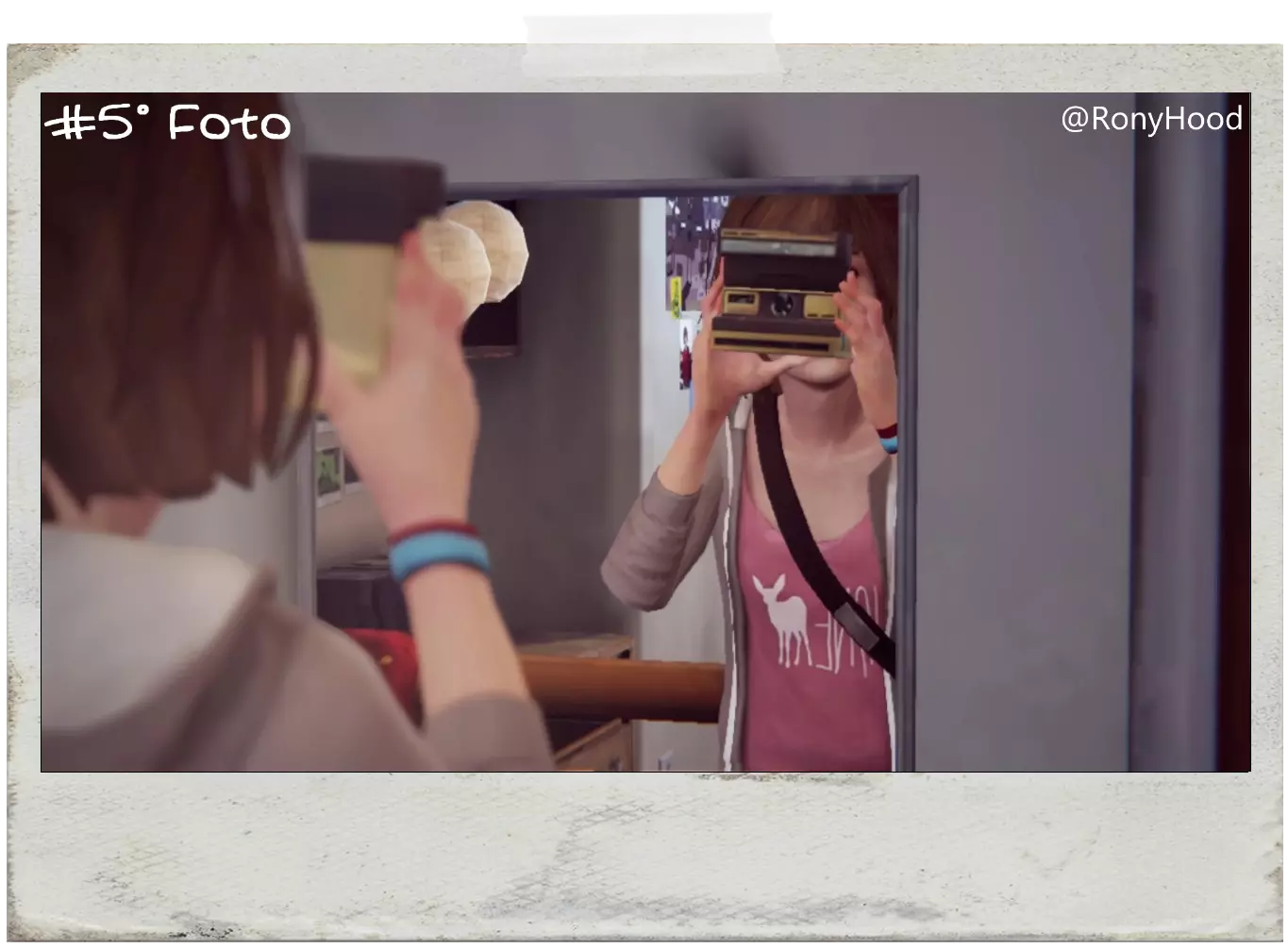 PinholedEN:在克洛伊家穿上瑞秋的衣服后,前往浴室并在镜子前拍照。 PT:当你在克洛伊家,穿上瑞秋留在她房间里的其中一件衣服后,离开房间,然后前往浴室并在镜子前拍照。