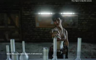 哈洛在袭击我们之前。引用哈洛的话:-……诱变剂!它会把我们都毁掉!-你们控制不了它。它会控制你们!……-我们永远离不开这座岛!永远!在一阵自动武器扫射后,她决定服用诱变剂(),并抓起了链锯。手持链锯的突变体——经典形象!诱变剂赋予了哈洛快速再生能力。这效果确实非常实用。