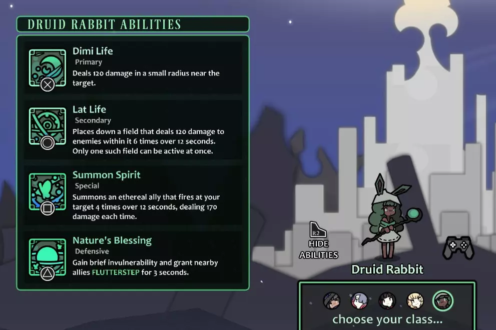 风格:辅助型 循环:3→2→[1…];3技能受冷却时间限制,2技能受持续时间限制 别被她可爱的外表迷惑了;德鲁伊实际上是较难高效操作的职业之一。当然,她拥有出色的攻击范围,并且不太依赖自身在屏幕上的位置,但她的战斗速度……至少可以说是迟缓的,需要更多的准备和规划才能充分发挥其循环的威力。尤其是移动型 Boss 简直是她的克星;生命之树一旦放置就无法移动,所以如果 Boss 跑出范围,你就需要重置它,从而损失宝贵的时间。另一方面,“自然祝福”是游戏中少数纯粹的防御技能之一,它能为你和队友提供快速的速度加成,且没有任何附加条件,这意味着你可以随意储存它,并寻找最佳时机来规避棘手的局面。尝试在复杂机制阶段使用它,帮助队友迅速调整站位。 虽然“生命延迟”和“召唤灵体”在某些战斗中可能显得有些难以掌控,但它们的总伤害值相当可观,“召唤灵体”为680,“生命延迟”为720。次要伤害、特殊伤害和特殊冷却时间是你的好帮手。同时,GCD(公共冷却时间)升级可以放心跳过;其对主职业的增益微乎其微,对副职业则完全无用,因为副职业根本不太在意GCD的快慢。还要记住,这种伤害量是在12秒间隔内通过多次攻击分散输出的;像“燃烧”这类依赖基础伤害的特性,对该角色的帮助远不如对其他角色那么大,所以让那些爆发更高的职业去使用这些特性吧。 未完待续…… 有了这些知识,你就可以开始月光王国的冒险之旅了。现在出发,让那些神秘的恶徒知道谁才是老大! 我还在努力解锁其他职业;一旦有机会体验它们,我会将其添加到本指南中。敬请期待!