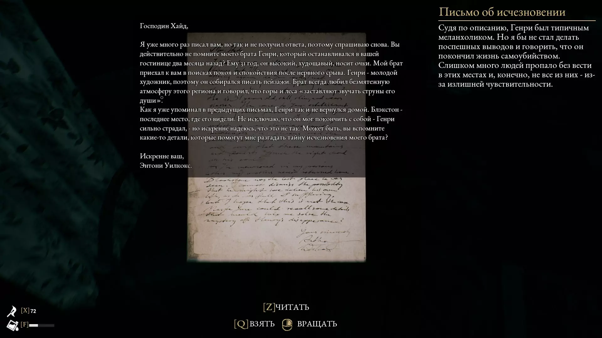 职业:中央情报局密码分析师 时间线:1979年,波士顿地区布莱克斯顿 来认识一下亚当,主角之一。抵达布莱克斯顿时,亚当是中央情报局的密码分析师,正致力于破解军事密码。他在阁楼里发现了先祖的日记,由此开始了一段深入疯狂的旅程…… 亚当感觉自己此刻比以往任何时候都更接近理智的边缘。他想在波士顿乡村寻求安宁平静的计划并未如他所愿。搬入从祖母那里继承的房子后,亚当本想为怀孕的妻子埃米营造田园诗般的氛围,并为自己找个安全的地方来破解苏联密码。不幸的是,他发现了一本日记,这本日记曾属于这栋宅邸的前主人尼古拉斯。而其中的故事并非普通的家庭故事,它并不局限于这本日志的封面。 角色 行动迅速 深思熟虑 敢于冒险 坚定不移 关于他 亚当·史蒂文森是一位约35岁的健壮男性。他在美国政府机构——中央情报局(CIA)担任密码分析师。 最近,他决定搬回布莱克斯顿的父母老宅。他认为,待在那里应该能帮助他破解对冷战进程具有决定性意义的俄罗斯密信。尽管他全身心投入工作,但对他而言,最重要的是确保妻子埃米和他们未出世的孩子的安全与舒适。 *** 尼古拉斯·海德 美国内战 年龄:27岁
