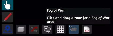 重要提示:确保你拥有的任何地图或物体都设置为“忽略战争迷雾”,否则你的玩家将完全看不到这些物体。有时,除非玩家直接站在物体上方,否则迷雾揭示区域无法显示所有物体。 要删除、重置或进一步自定义战争迷雾区域,你可以选择战争迷雾工具。你可以按五次“F3”键,或者前往左侧用户界面,选择从上往下数第三个选项中的第五个——战争迷雾。见下文。左键点击战争迷雾即可进行自定义或选择删除。