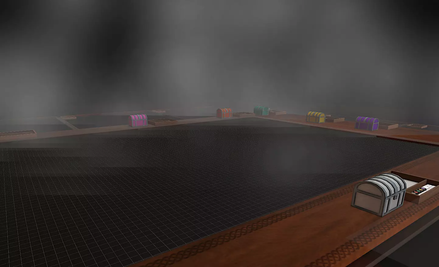 “一体世界”是一种更困难、更复杂的地图创建方式,它能在一个完全互联的枢纽中即时生成图像和道具。 虽然“一体世界”可能有点复杂,但你可以制作能链接到其他地图的地图,并在图像上生成物体。创意工坊中有大量玩家制作的模组可供分享,你可以导入并使用它们。 简单的视频教程,请查看Tattle Tale的视频:https://www.youtube.com/watch?v=YOVAI_0dPVw 详细指南,请观看ColColonCleaner的视频:www.youtube.com/watch?v=7EvakLCmzZE&ab_channel=ColColonCleaner 其他工具 战争迷雾 当你希望玩家进入地下城或新区域时无法看到整个地图,你可以使用战争迷雾,它是一种使桌子中央区域变暗的效果,玩家无法看到,但地下城主(DM)可以。在地下城主界面按下“战争迷雾”按钮即可在桌子上生成一个。