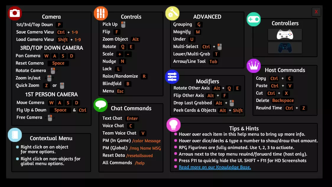 《桌游模拟器》中龙与地下城(D&D)的深度游玩指南。包含图文并茂的详细步骤。 前言 在使用本模组前,掌握《桌游模拟器》的使用和操作方法至关重要。本指南并非《桌游模拟器》的使用教程,也不是龙与地下城(D&D)的玩法教程,而是关于如何在《桌游模拟器》中设置龙与地下城(D&D)游戏的指南。 建议先在主菜单中完成教程(教程位于中间的灯泡按钮),你也可以按“/”或“?”键调出控制说明。 教程