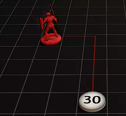 移动测量:启用此选项后,当模型被拿起并移动到更远位置时,会生成一个标记和一条递增的线条。这用于追踪角色在一回合内的移动距离。