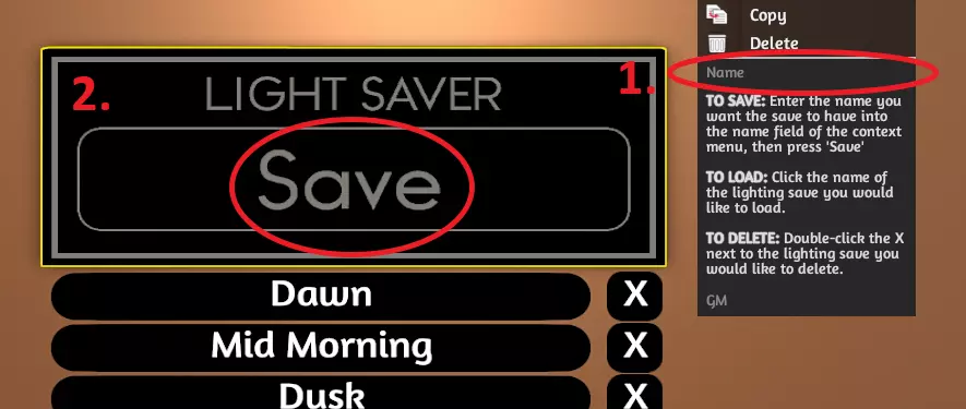 右键点击“灯光节能器”>将其重命名为预设名称>点击工具上的“保存”按钮