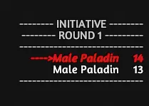 战斗中的 initiative 追踪:战斗时,你可以通过按下红色箭头来切换至下一个角色的回合。当轮到某个角色行动时,会有一个 ping 箭头和提示音来指示当前是哪个模型的回合。如果你忘记了当前该哪个模型行动,可以按下“刷新”按钮再次 ping 该模型。战斗结束后,你可以按下“重置”按钮清除屏幕上的 initiative 信息。