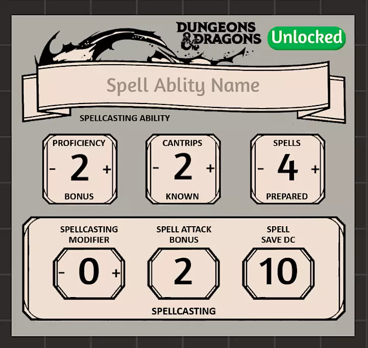 能力追踪器 此表格用于追踪法术数量及其相关计算、豁免检定、攻击加值等。
