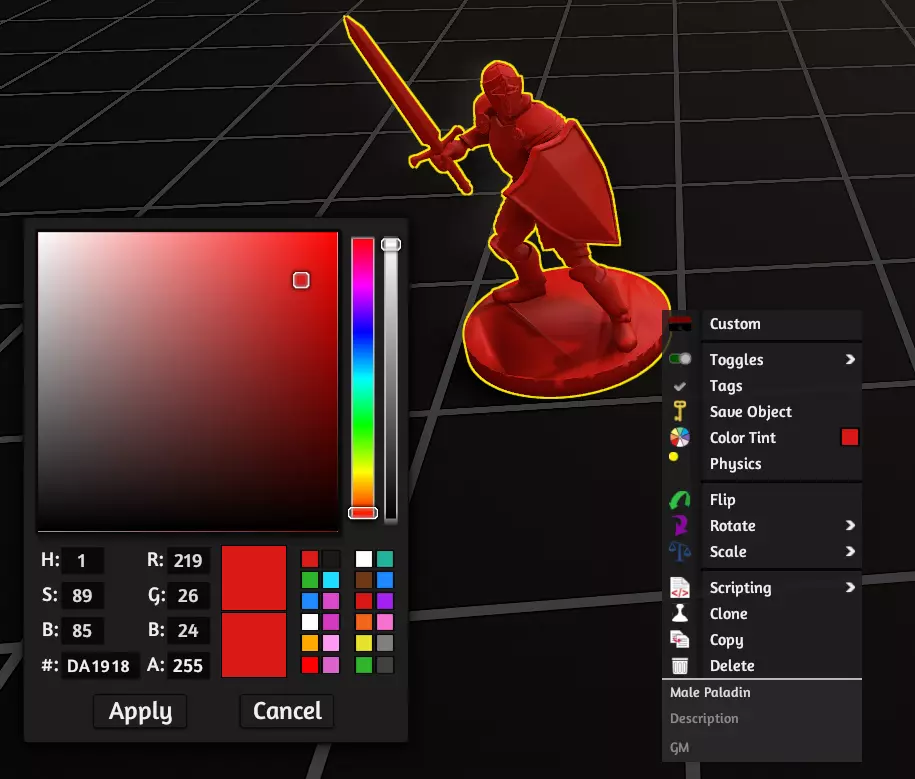 迷你模型 一旦你拥有了迷你模型,我个人建议将其颜色设置为与玩家在游戏中的颜色一致,但具体选择哪种色调完全取决于你。若要更改颜色,右键点击模型 > 点击“颜色色调”,然后选择你喜欢的任何颜色即可。