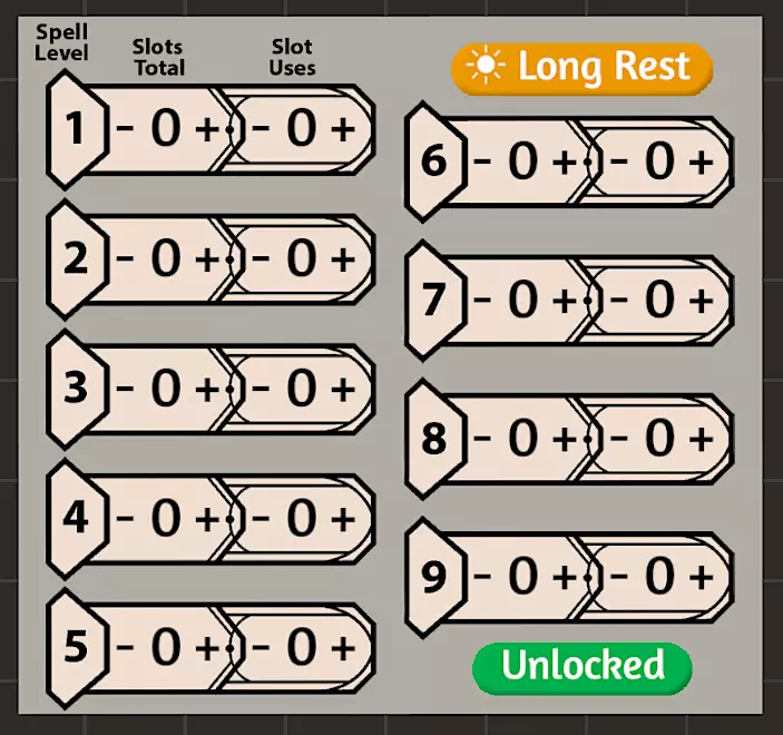 法术位追踪表 此表格用于记录拥有施法职业的玩家的法术位使用情况。
