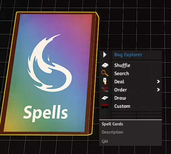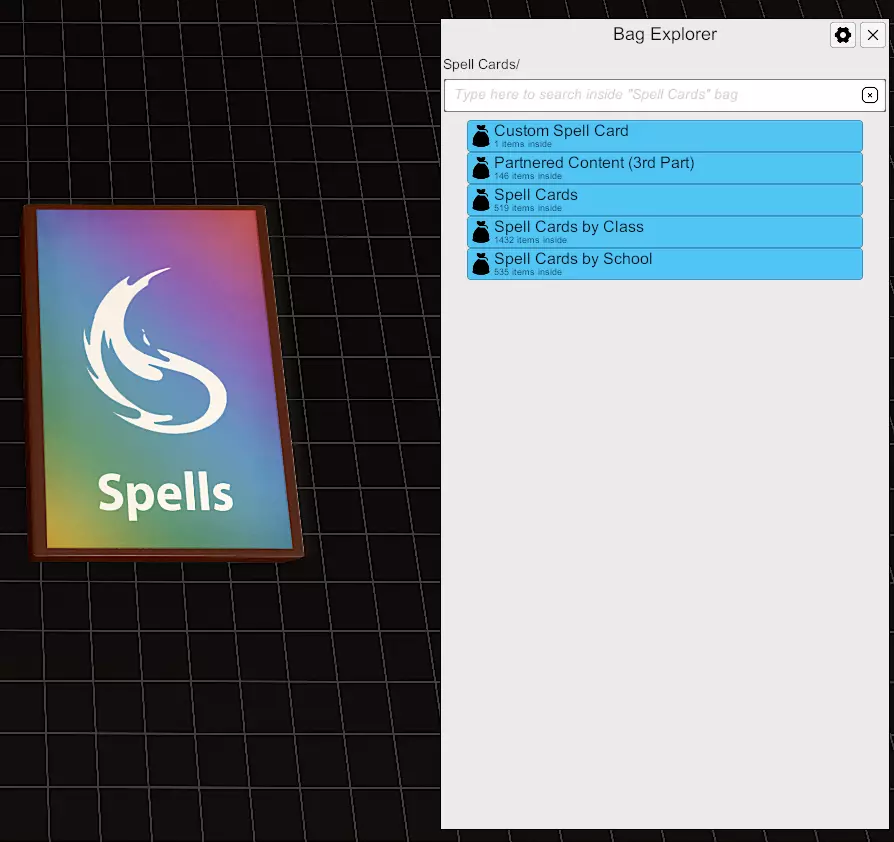 你可以搜索想要查找的卡牌名称,并将名称拖到你想要生成卡牌的区域。任何玩家都可以使用背包浏览器,而不仅仅是地下城主(DM)。但请注意,同一时间只能有一人使用该功能。 骰子投掷器 自动骰子投掷器:在此模组中,当你点击投掷器条上的按钮时,骰子投掷器会自动生成骰子。图标显示的是D4、D6、D8、D10、D12和D20骰子。每次按下其中一个按钮,就会生成一个相应的骰子。你可以混合搭配不同骰子,准备好后,按“投掷”按钮即可掷出骰子。 随后会向所有人显示文字信息,注明是谁进行了投掷以及掷出的数字。骰子会自动计算总和。想要清除区域内的骰子时,按“清除”按钮即可。