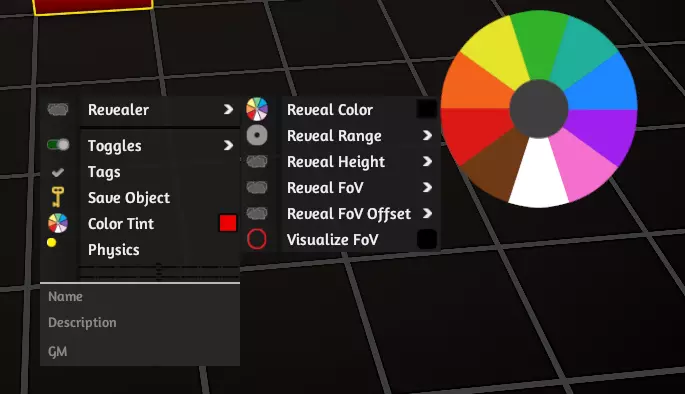 如果你设置了显示颜色,那么只有该玩家和地下城主(DM)能看到以此设置显示的该物体内容。