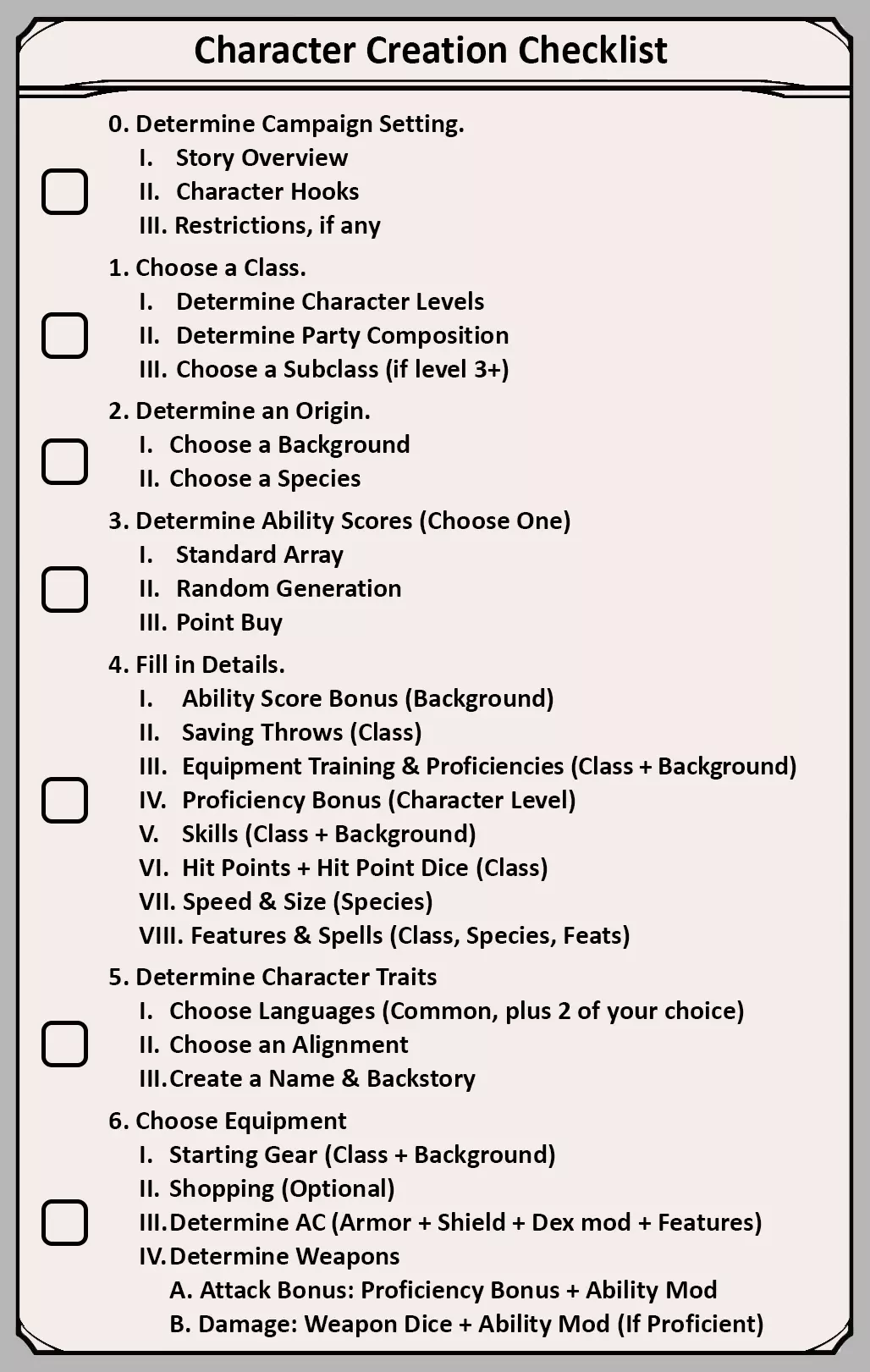 角色创建框中还包含一份角色创建步骤清单。你可以在完成每个步骤后点击相应的方框进行勾选。