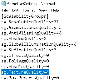 3. 右键点击用记事本编辑,将sg.TextureQuality修改为4,然后保存。