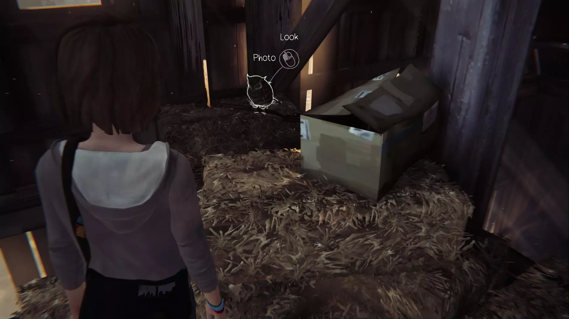 在第二张照片中,我们需要前往车库,在车库深处有一块木板,我们需要移动它才能拍到鸟巢的照片。照片3: