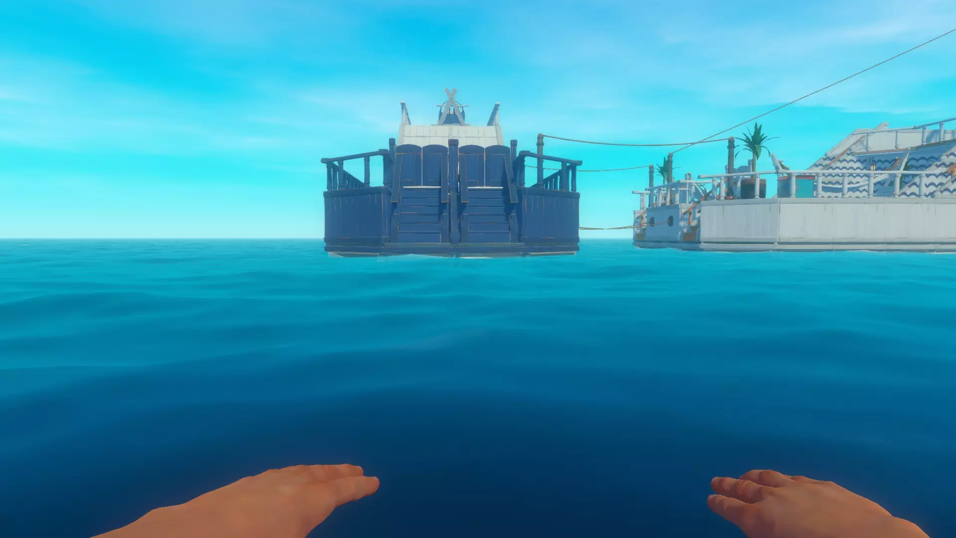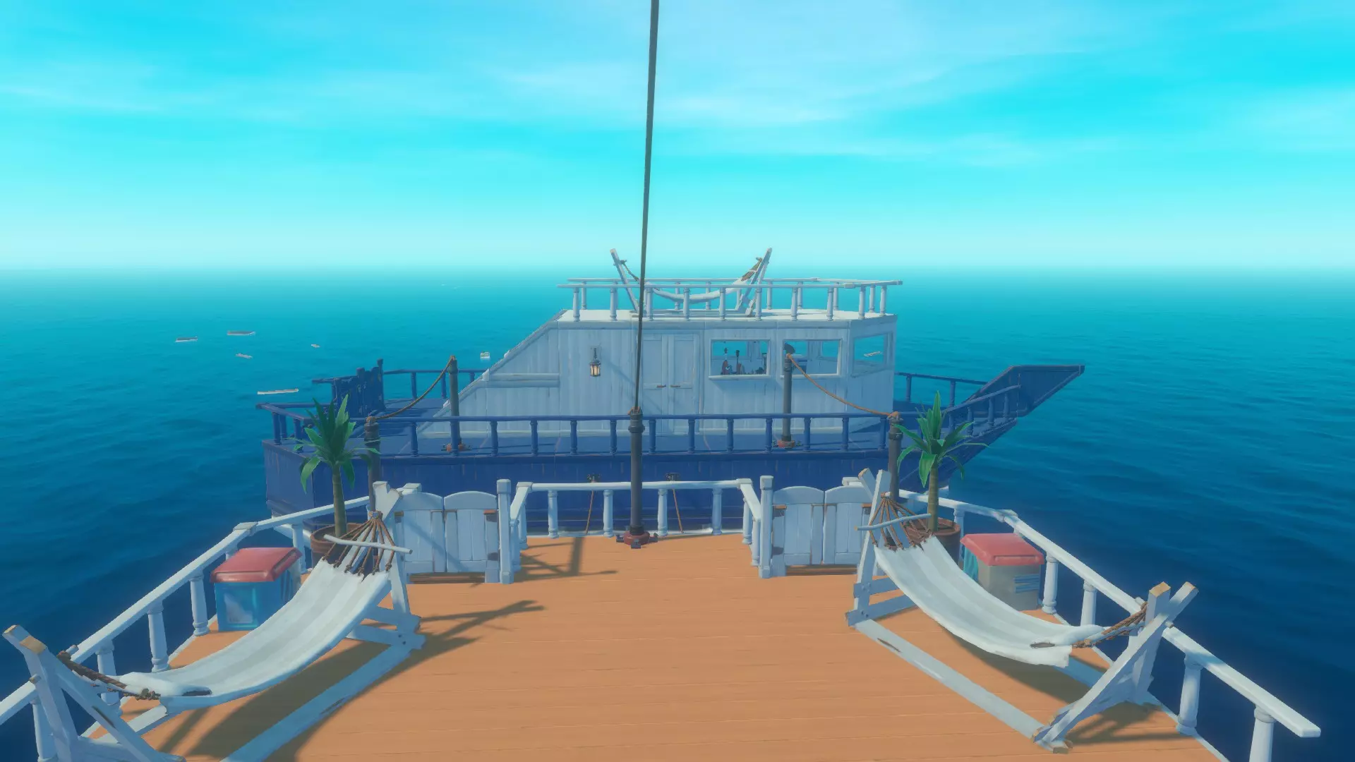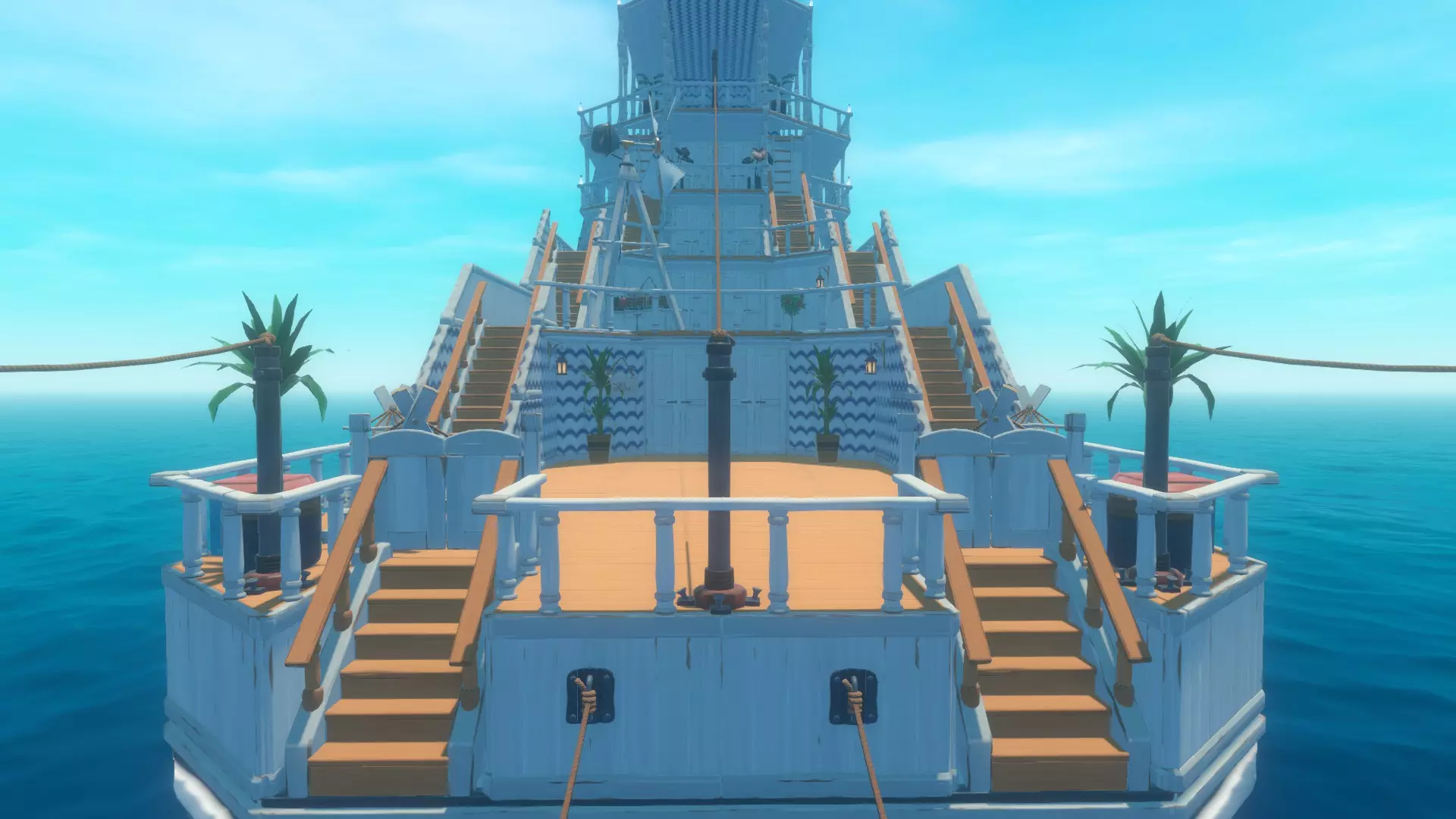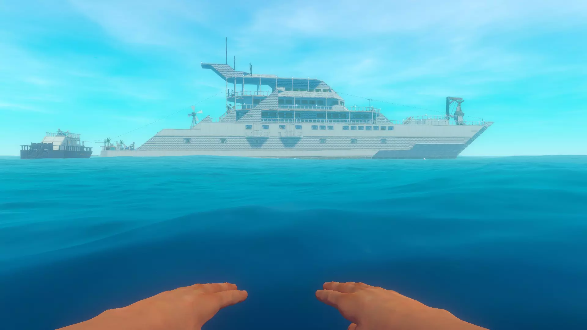 在本指南中,我想分享并介绍我在“生存”模式简单难度下建造的建筑。 我先从一段小小的背景故事说起: 有一次,我划着普通木筏时,突然萌生了一个想法:在游戏中建造一些有趣且特别的东西,它不仅能在生存方面为我提供帮助,还能凭借外观让我心情愉悦。 我将这座建筑命名为——“超级游艇”(Luxury Super Yacht)。日光下的图像:☀️