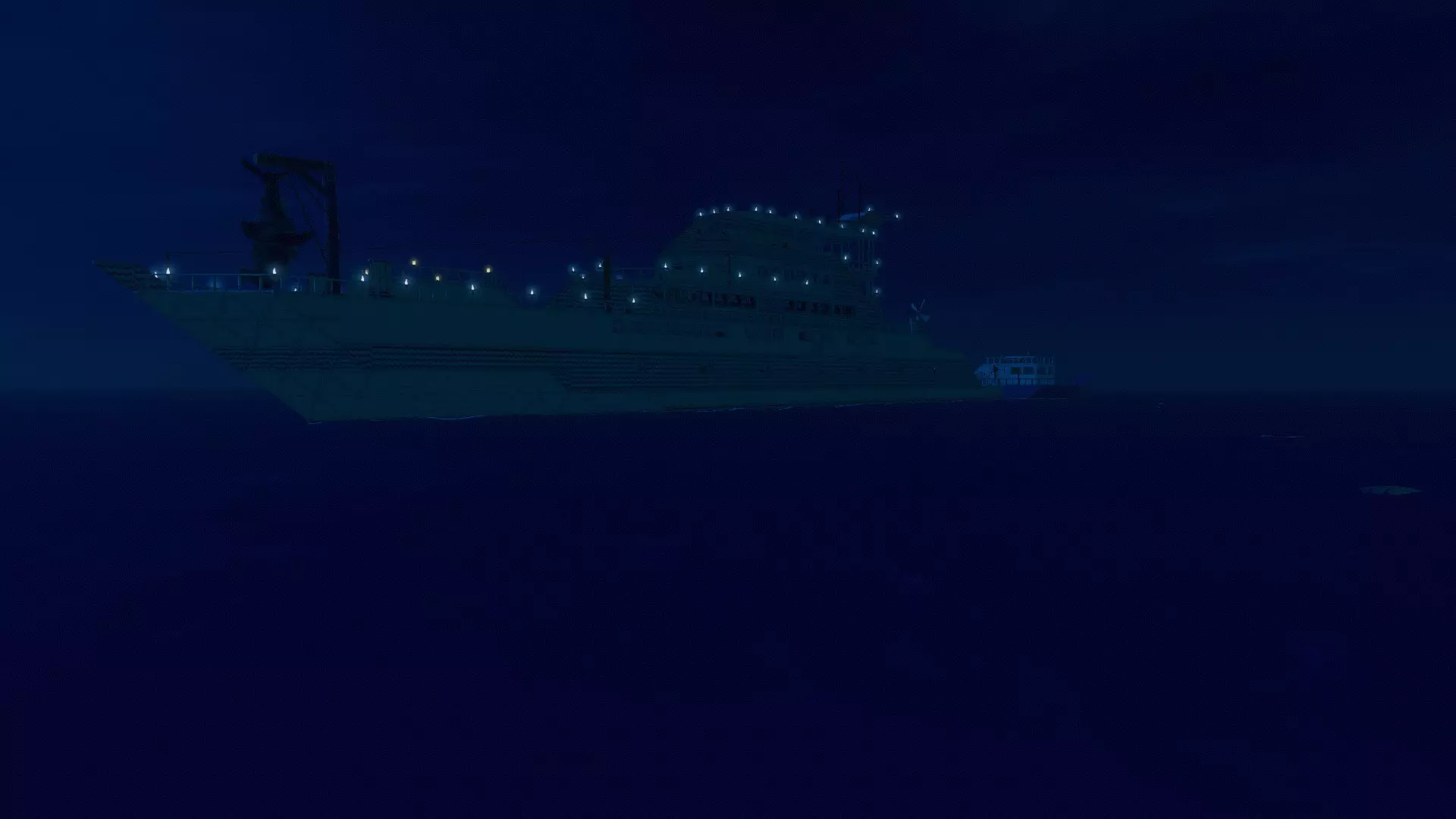 关于建造阶段的一些情况 建造工作是我独自完成的。有几次我请我的朋友帮忙,让他帮我完善我的构想并收集所需的资源(这个过程实在太累人了)。为此,我要特别感谢他:VladGun ❤。 由于大部分工作都是我独自完成的,所以建造花费了相当多的时间。具体时长我无法给出准确数字,因为没有统计过,但实际游玩时间大约在150小时以上。虽然建造这个建筑的想法很早就有了,大概是在2022年,但很长一段时间我都没法让自己完成它。看着还有那么多工作要做,我多次搁置了建造,而且还多次修改和重新设计那些已经完全建好的部分。但无论如何,我还是成功完成了。 ⚓️ 1 — 甲板(零号)⚓️