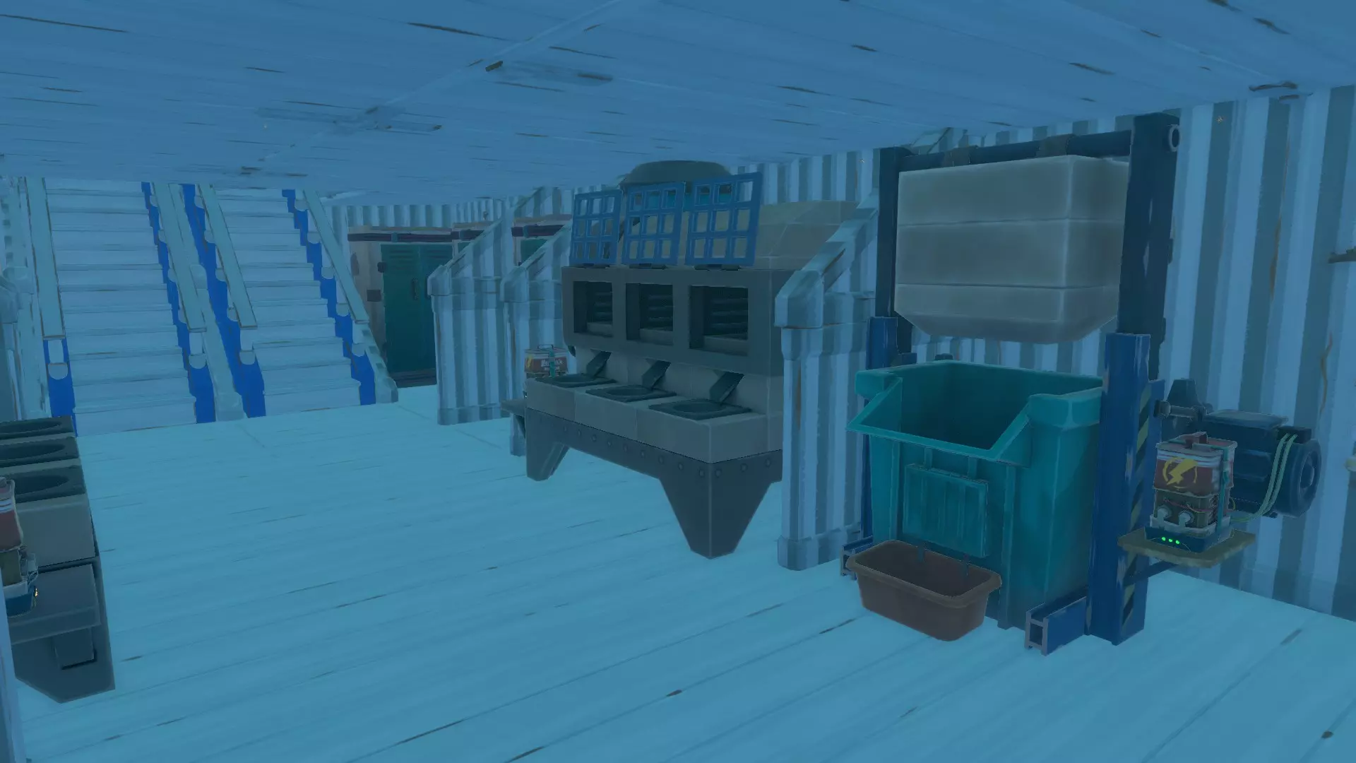 ● 工坊,包含2个电熔炉、2个加工机以及一个用于存放资源和工具的小型仓库。